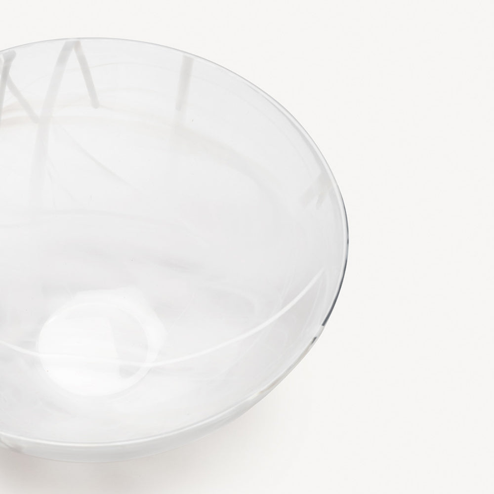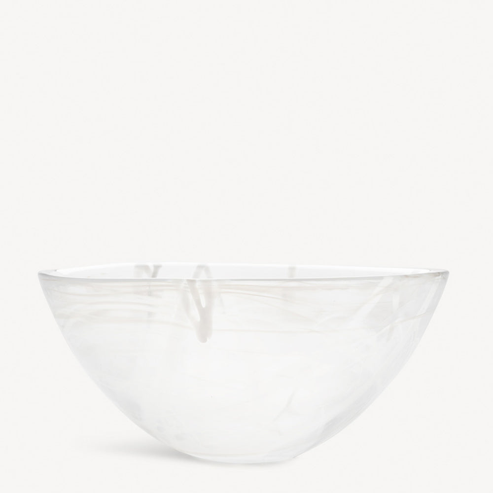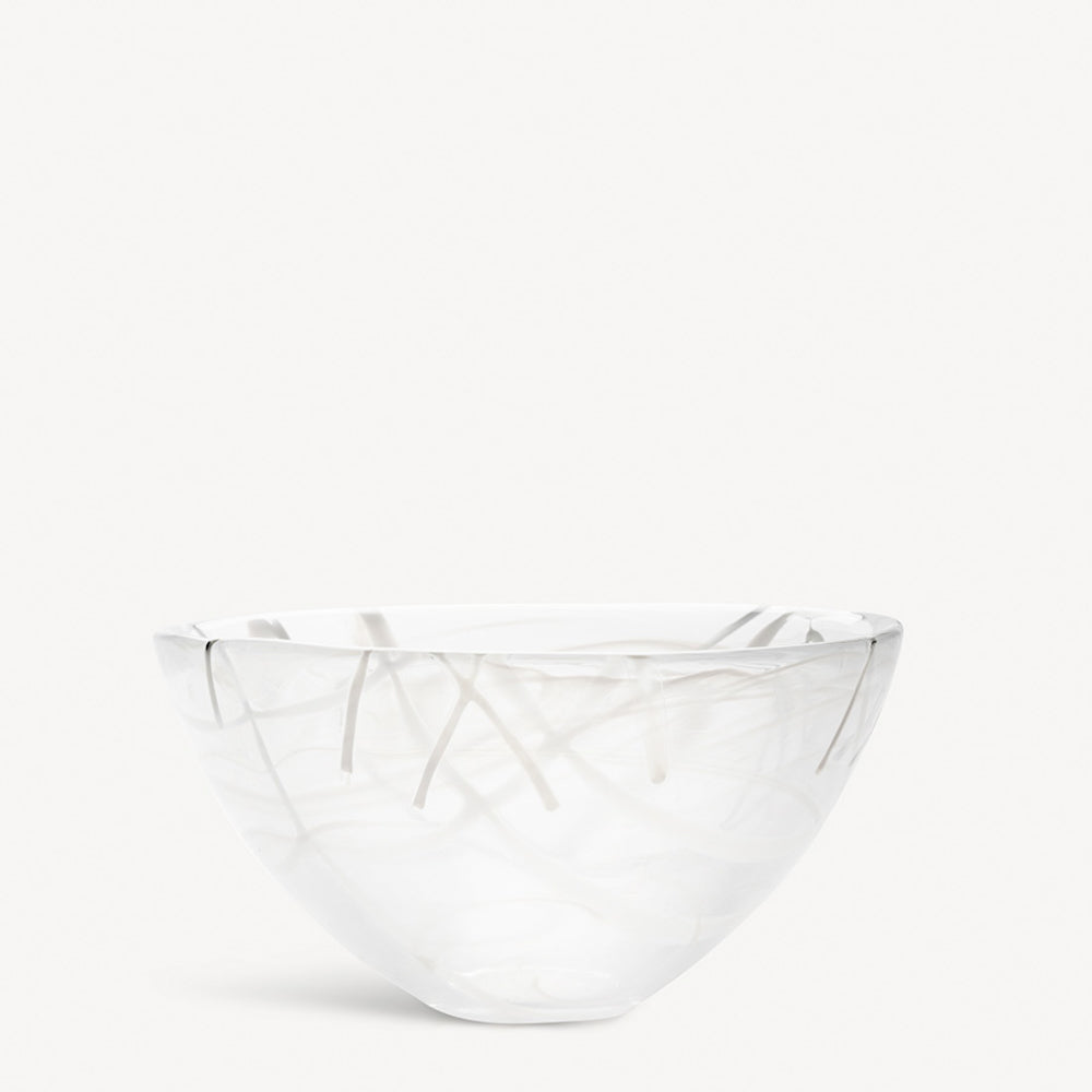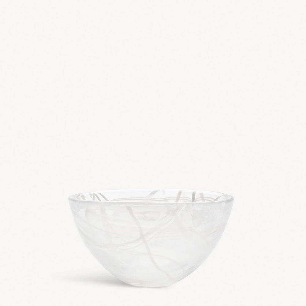 Contrast from Kosta Boda is made using a technique called centrifuging. This technique creates veils within the glass, making each product unique. The large bowl is beautiful on its own or as a fruit bowl. Design by Anna Ehrner.