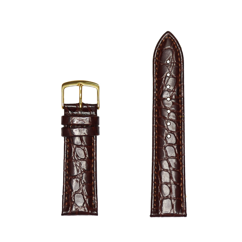 Ladies Genuine Crocodile Grain Leather Watch Band, Gold Buckle - Brown