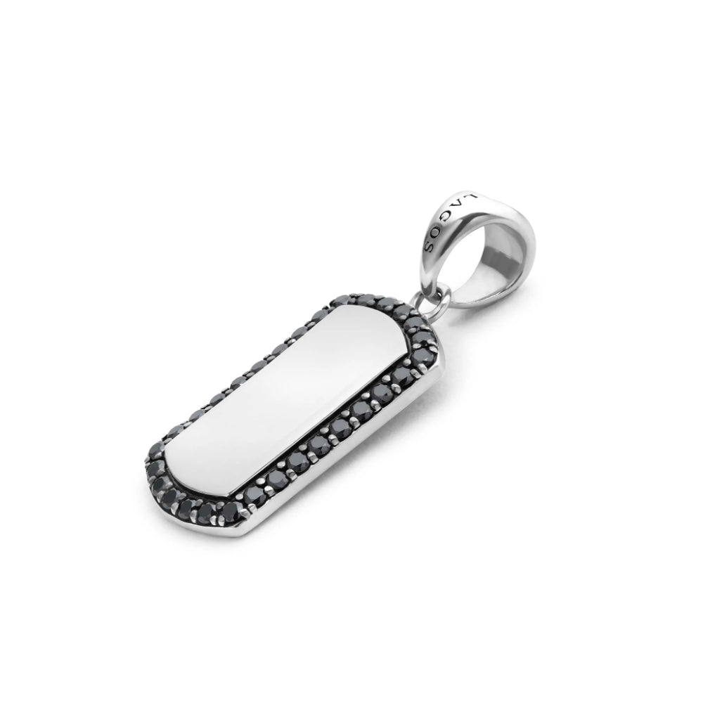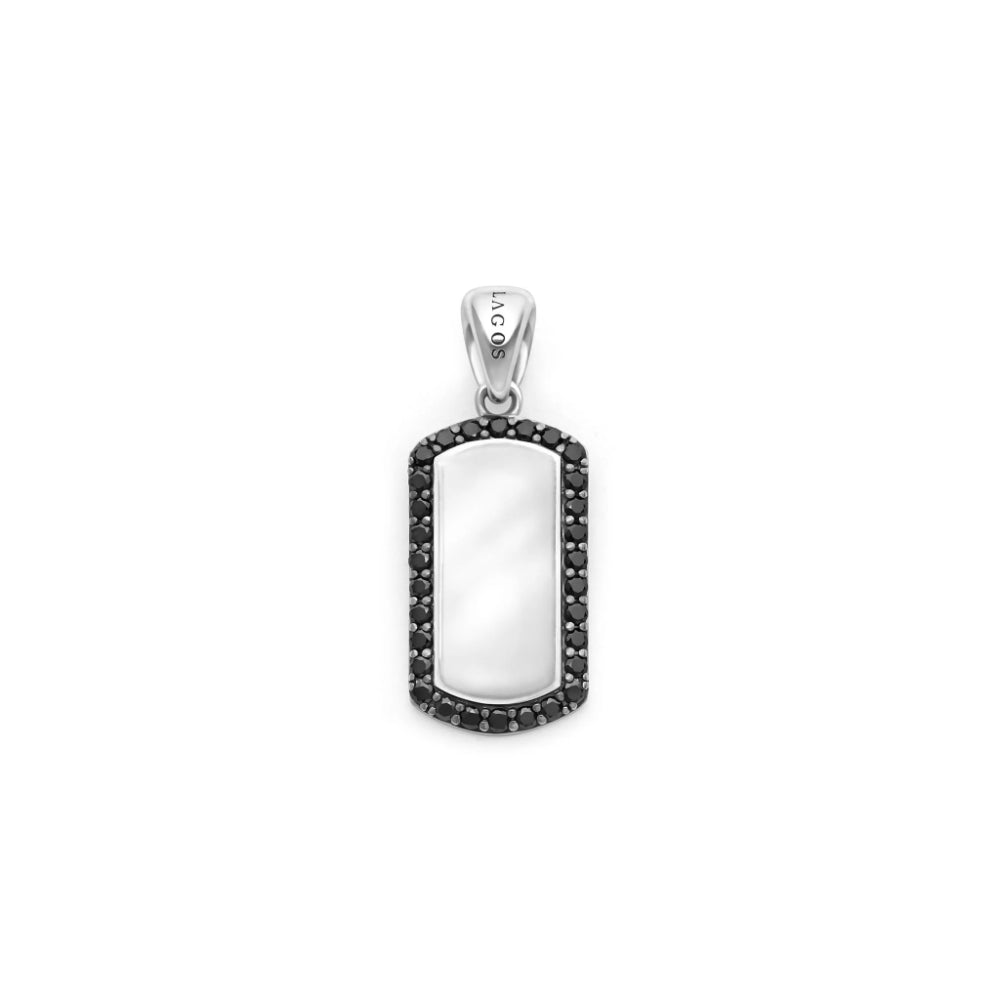 Black diamonds accented by smooth sterling silver and Caviar beading forms this statement tag amulet. LAGOS diamonds are the highest quality natural stone.