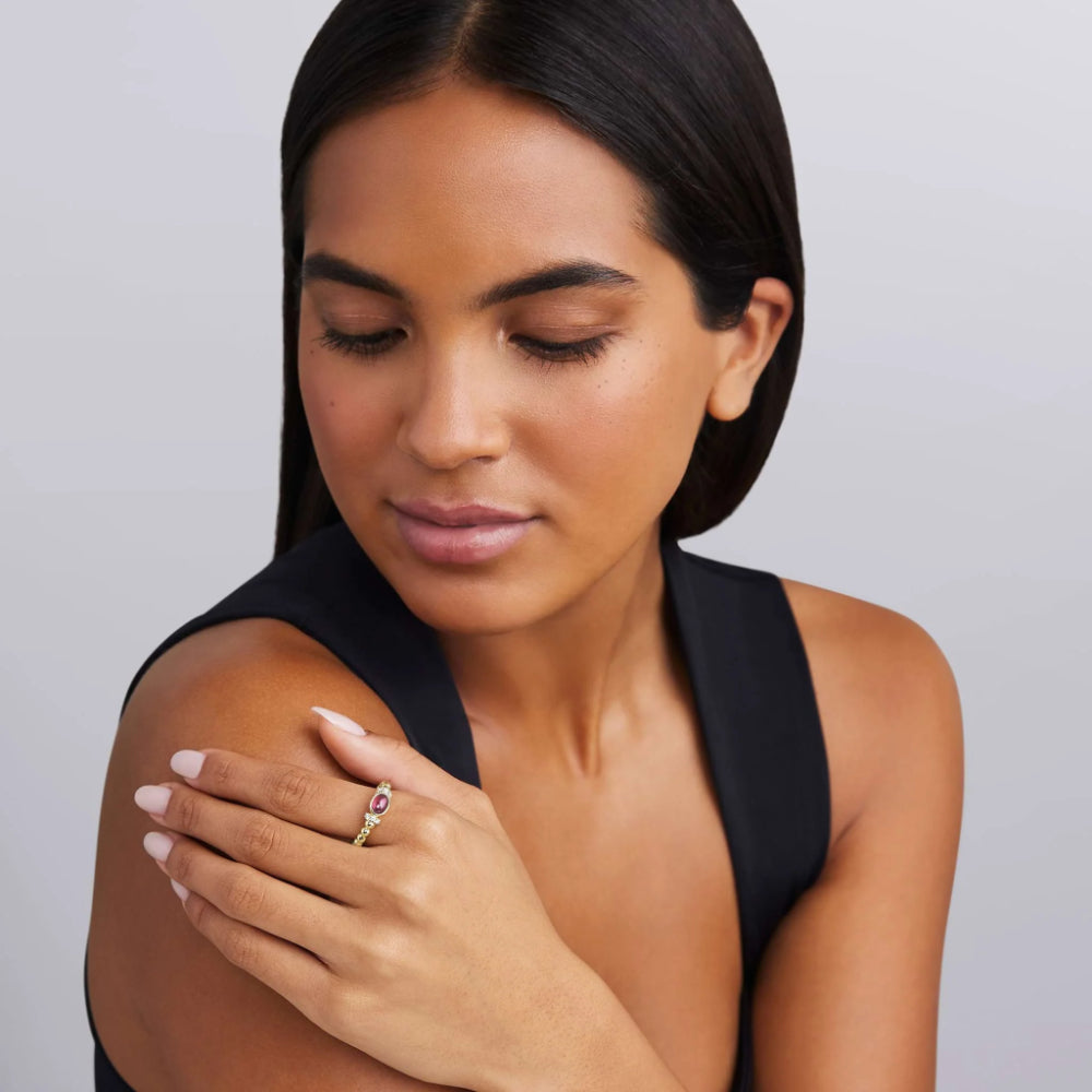 Lagos Caviar Gold 18k Gold and Rhodolite Garnet Beaded Diamond Ring