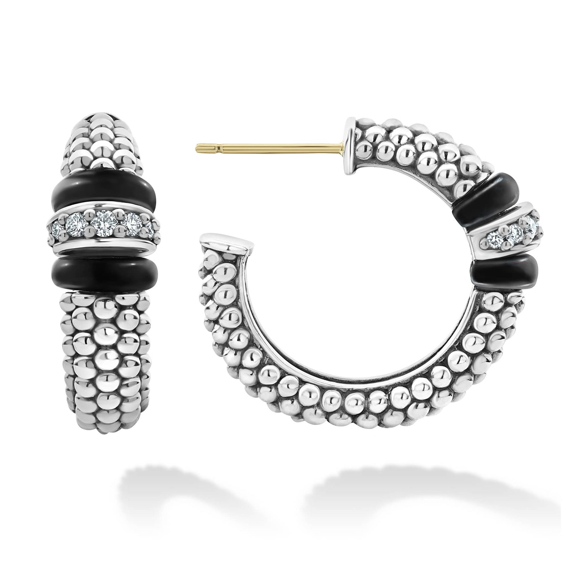 Lagos Ceramic Caviar Diamond Hoop Earrings