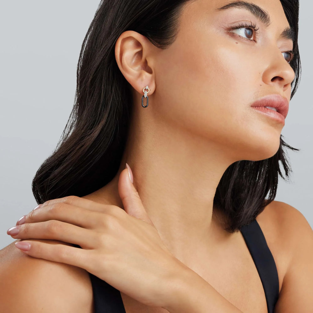 18K gold, diamonds and black ceramic form these link drop earrings. LAGOS diamonds are the highest quality natural stones.