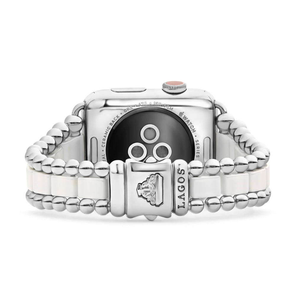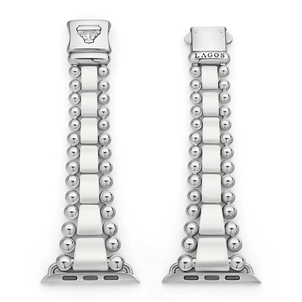 Lagos Smart Caviar White Ceramic and Stainless Steel Watch Bracelet, 42-49mm