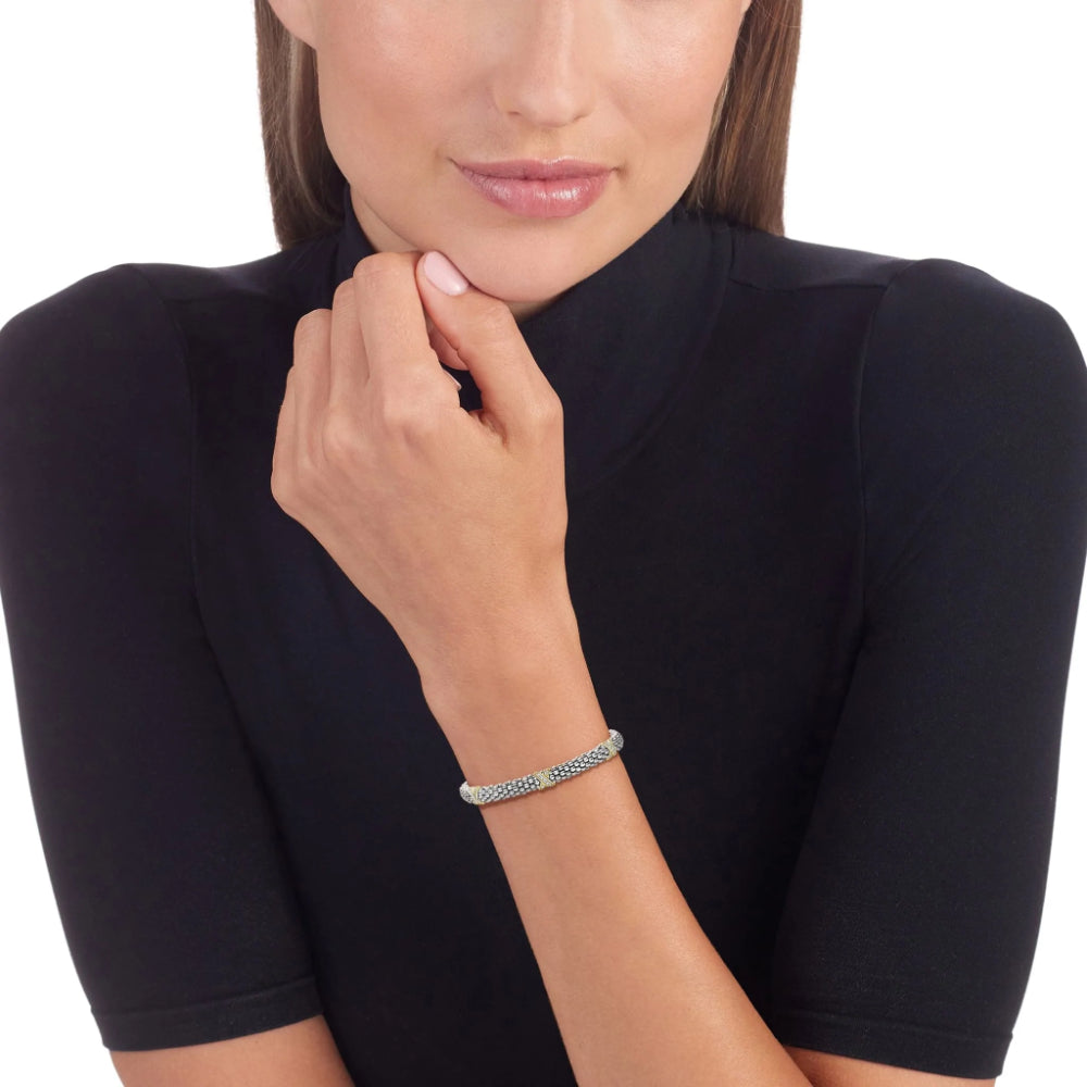Lagos Three Station Gold X Diamond Caviar Bracelet