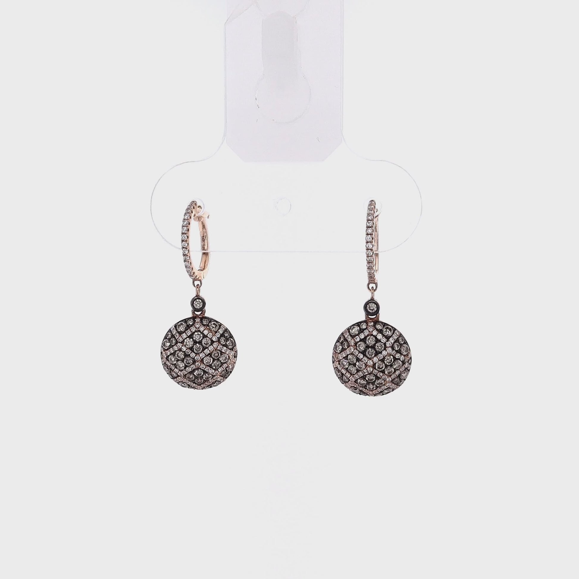 LeVian 14k Rose Gold and Brown Diamond Drop Hoop Earrings