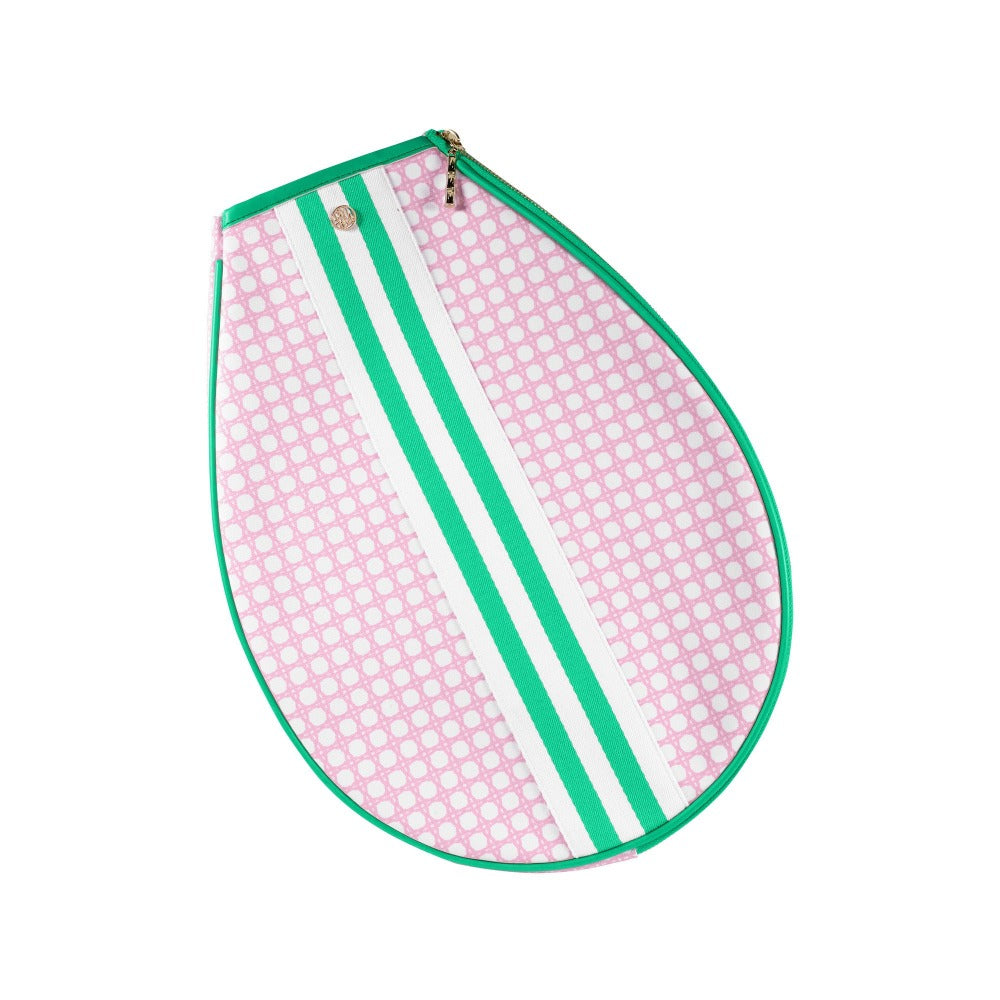 Carry your tennis essentials in style with this colorful and cute tennis tote. Keep your equipment safe traveling to and from the court with the detachable racket cover. Fill the matching tote with all of your essentials, including extra tennis balls, your coordinating water bottle, and after-match outfits.