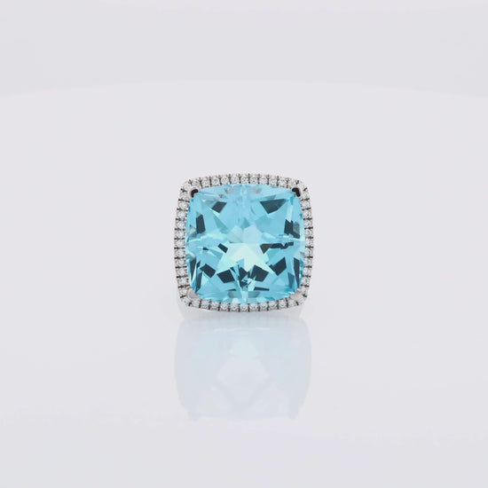 Lisa Nik 18k Blue Topaz and Diamond Halo Ring