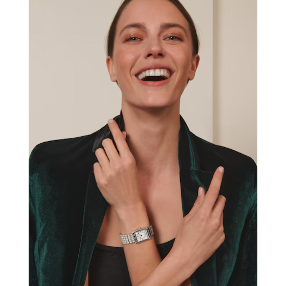 Each reference in the Mini DolceVita collection features a rectangular 21.50mm x 29.00mm stainless steel case and is powered by a highly-accurate L178 quartz movement. The Cosmo circular dial inside the rectangular case calls attention to its uncompromising elegance.