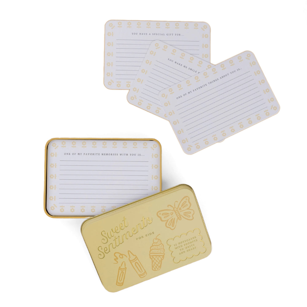 Each Sweet Sentiments for Kids set includes 12 prompted notecards for parents, grandparents, or teachers to fill out with love, advice, and affirmation — creating a keepsake of words they’ll never outgrow.
