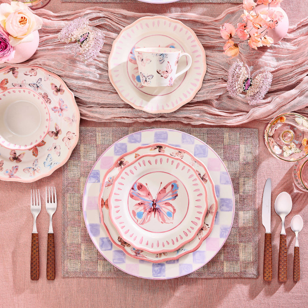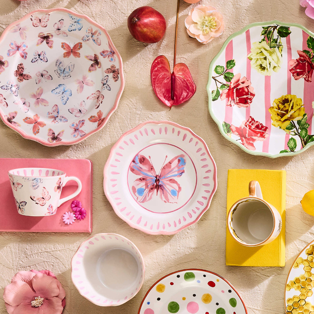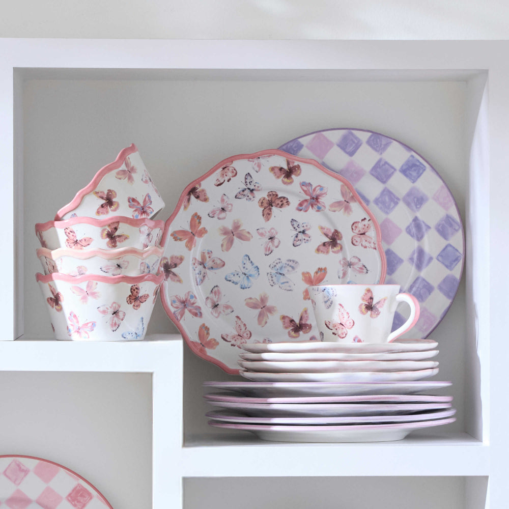 Inspired by the delicate strength of the butterfly, bring serene style to your table with our Butterfly Hill Dinner Plate. Designed for everyday use, it's finely crafted from durable made-in-Portugal stoneware that’s both dishwasher- and microwave-safe, decorated with hand-applied transfers, and finished with a hand-painted rim.