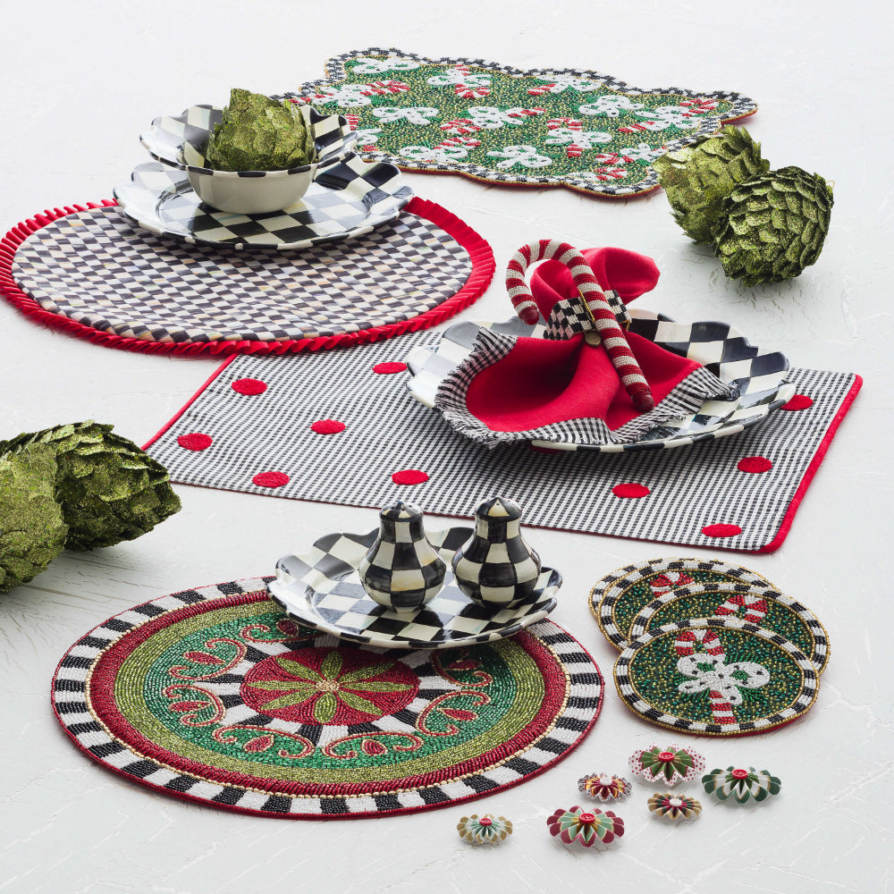 Spice up your table with Courtly Check® Enamel Salt & Pepper Shakers, rendered in MacKenzie-Childs signature black-and-white pattern that complements any kitchen decor. Make sure your seasoning supply is up to snuff because demand will surely be high when calls to “pass the salt and pepper, please” result in the delivery of such flavorful pieces. With a subtle jewel-tone palette woven by an artisan’s brush through the glossy, hand-painted, high-contrast checks, we’ve yet to find a color (or food!) that doesn’t look good with Courtly Check.
