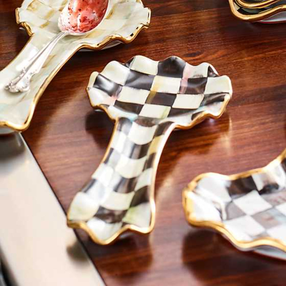 MacKenzie-Childs Courtly Check Aurora Ceramic Spoon Rest