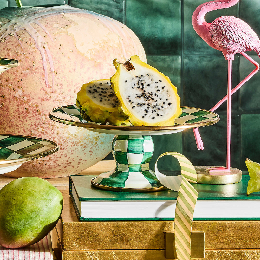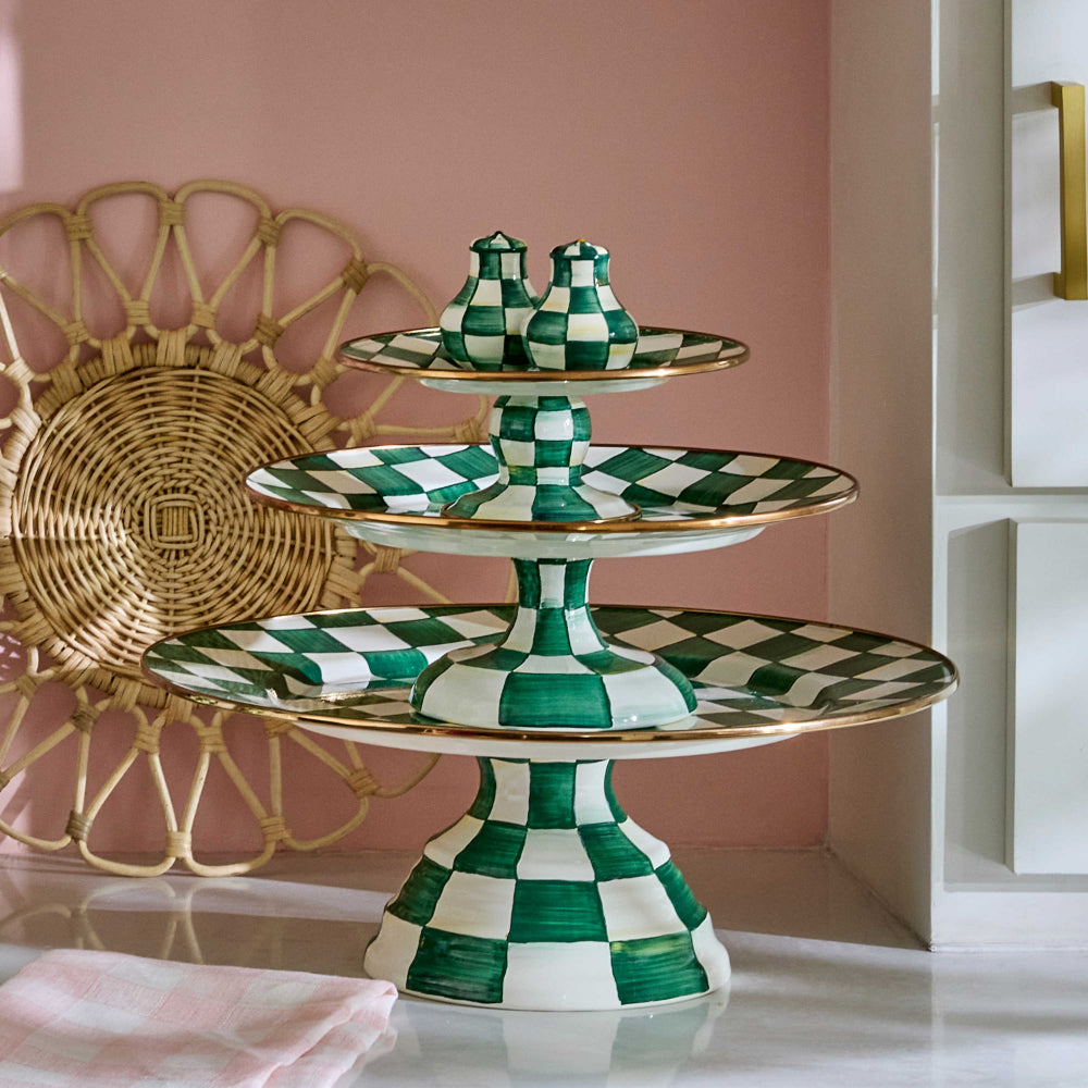 Mackenzie-Childs Emerald Check Pedestal Platter