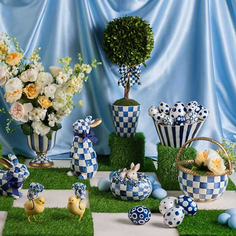 Covered with our signature color-dragged blue checks with golden roping on the handle and edges, the Large Royal Check Basket is a beautiful and practical way to display so many things in true-blue style.