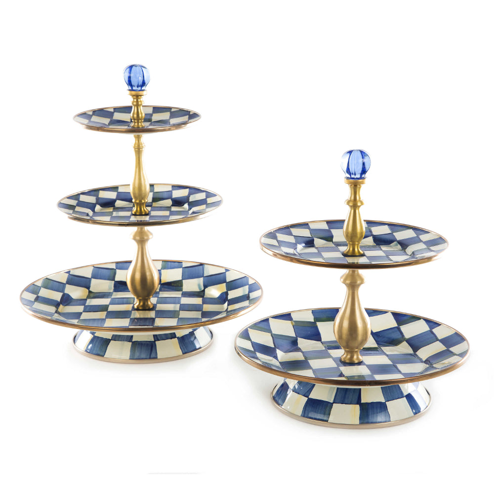 MacKenzie-Childs Royal Check Enamel Three Tier Sweet Stand