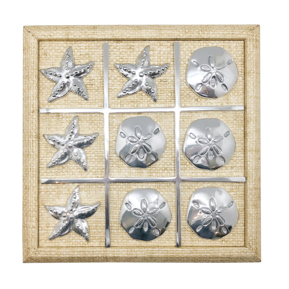 Fancy a game of Tic Tac Toe? Let the games begin and play in style with this refined take on a classic board game that is crafted of a beautifully woven Faux Grass Cloth in Indigo Blue or Sand, paired with 100% recycled aluminum playing pieces. The perfect accessory for your coffee table, or a gift that will be displayed and played for years to come!