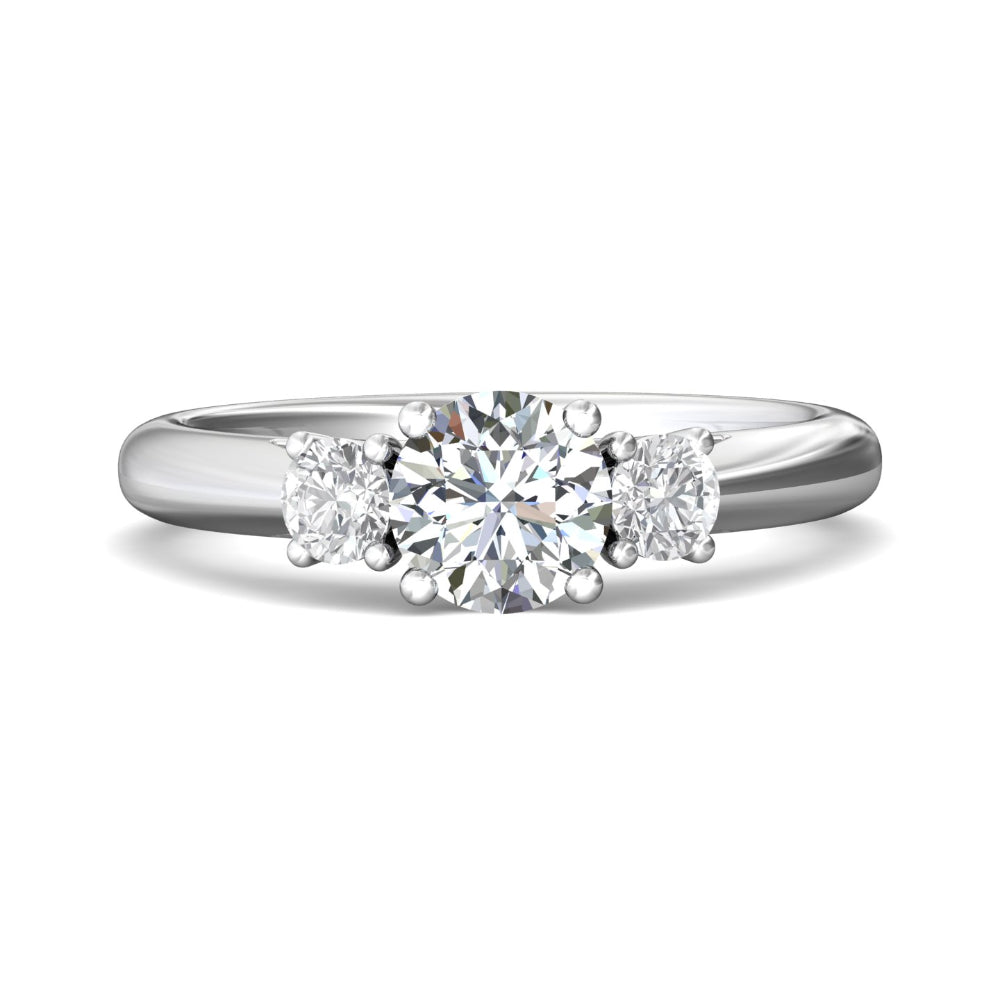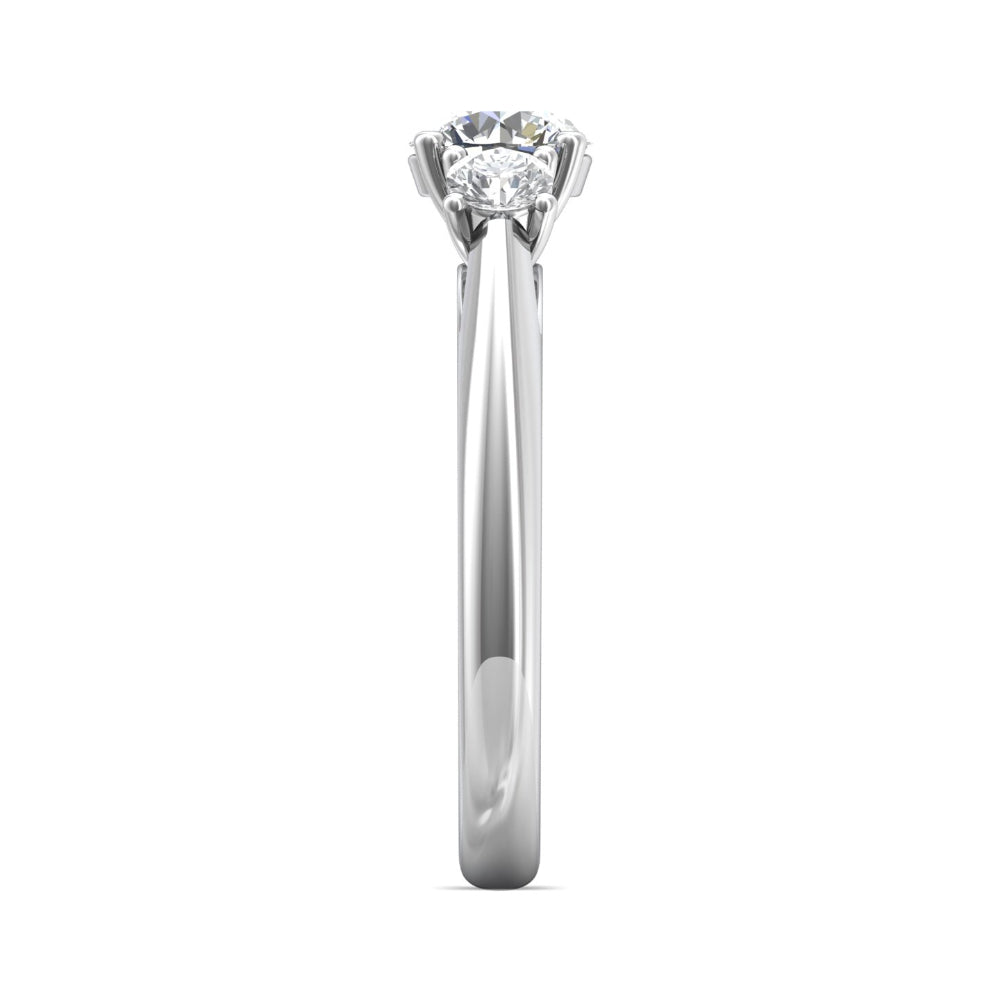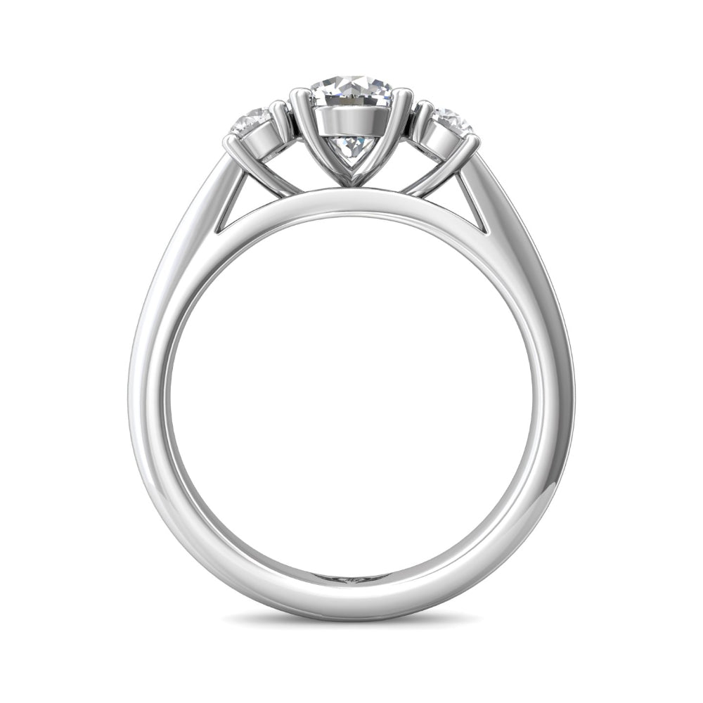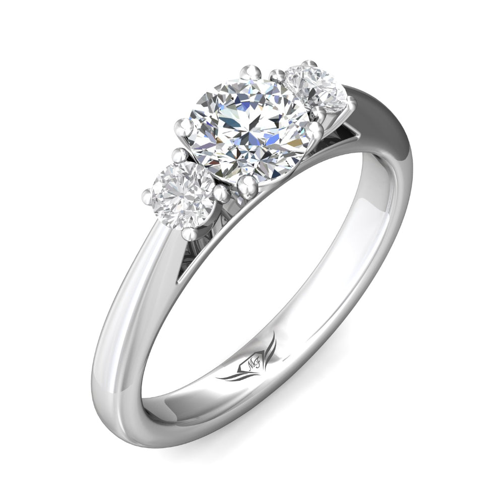 This FlyerFit engagement ring is the epitome of a standard three stone setting and perfect for a no fuss look.