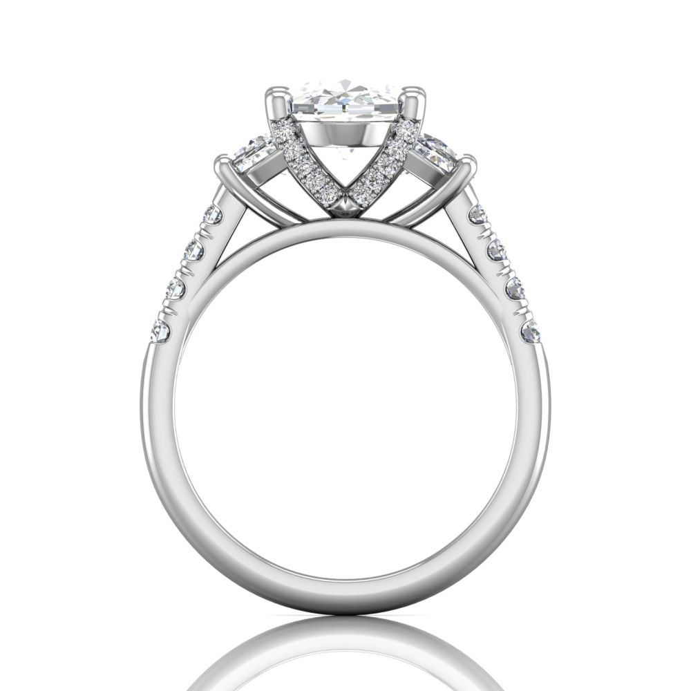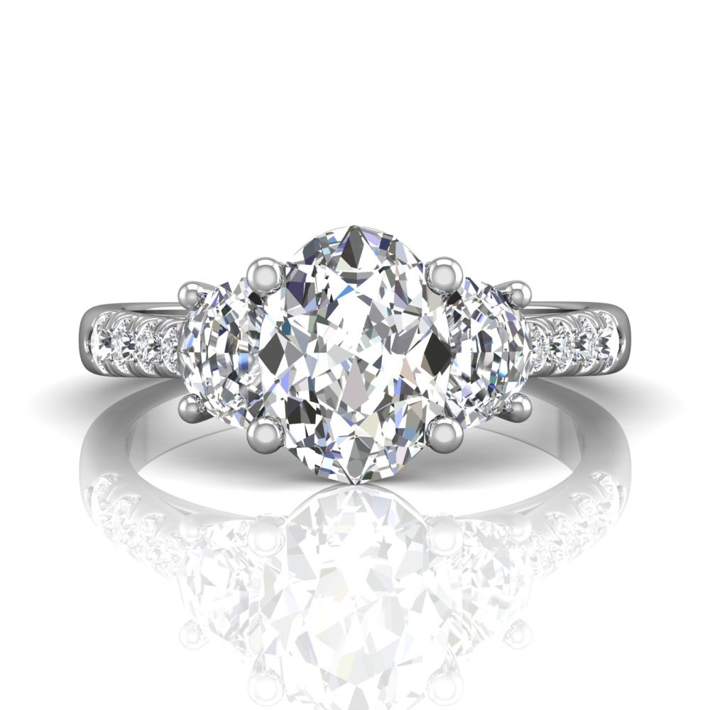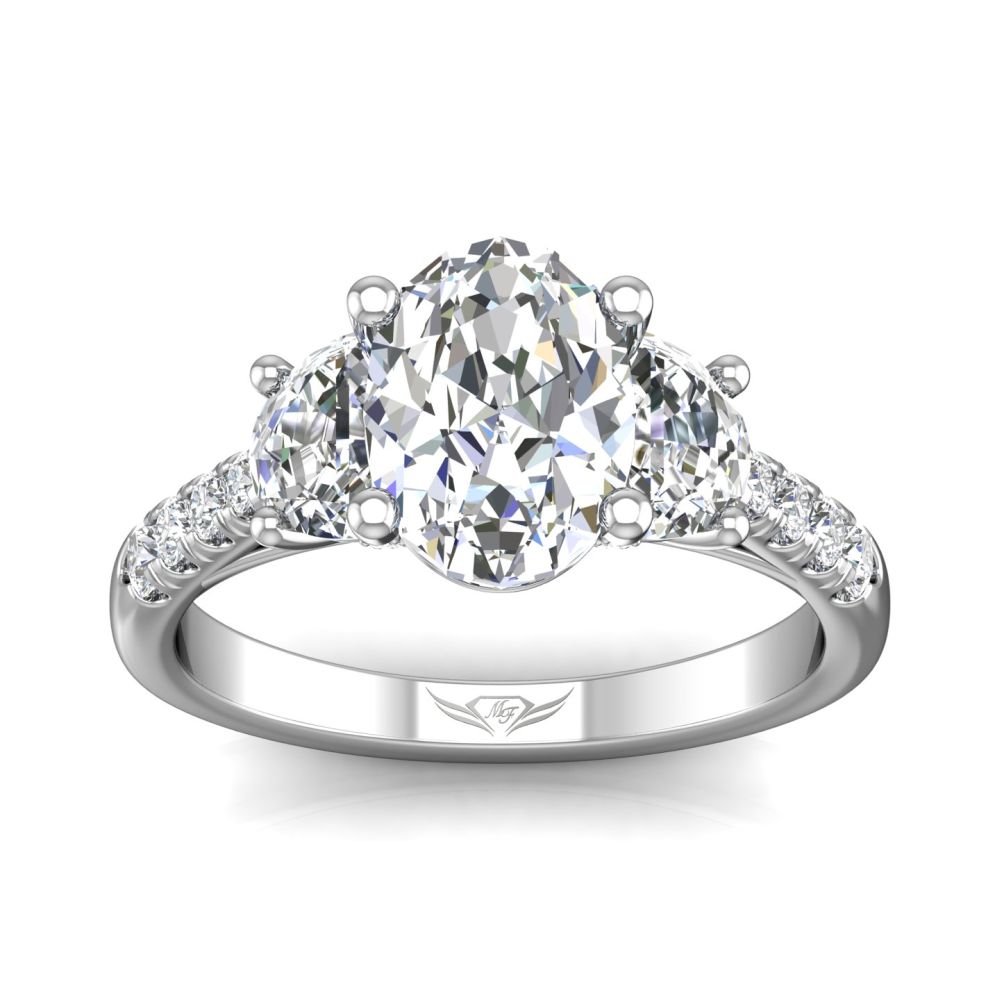 This FlyerFit engagement ring is accented with cutdown micropavé diamonds and half-moon side diamonds that perfectly complement an oval center stone.