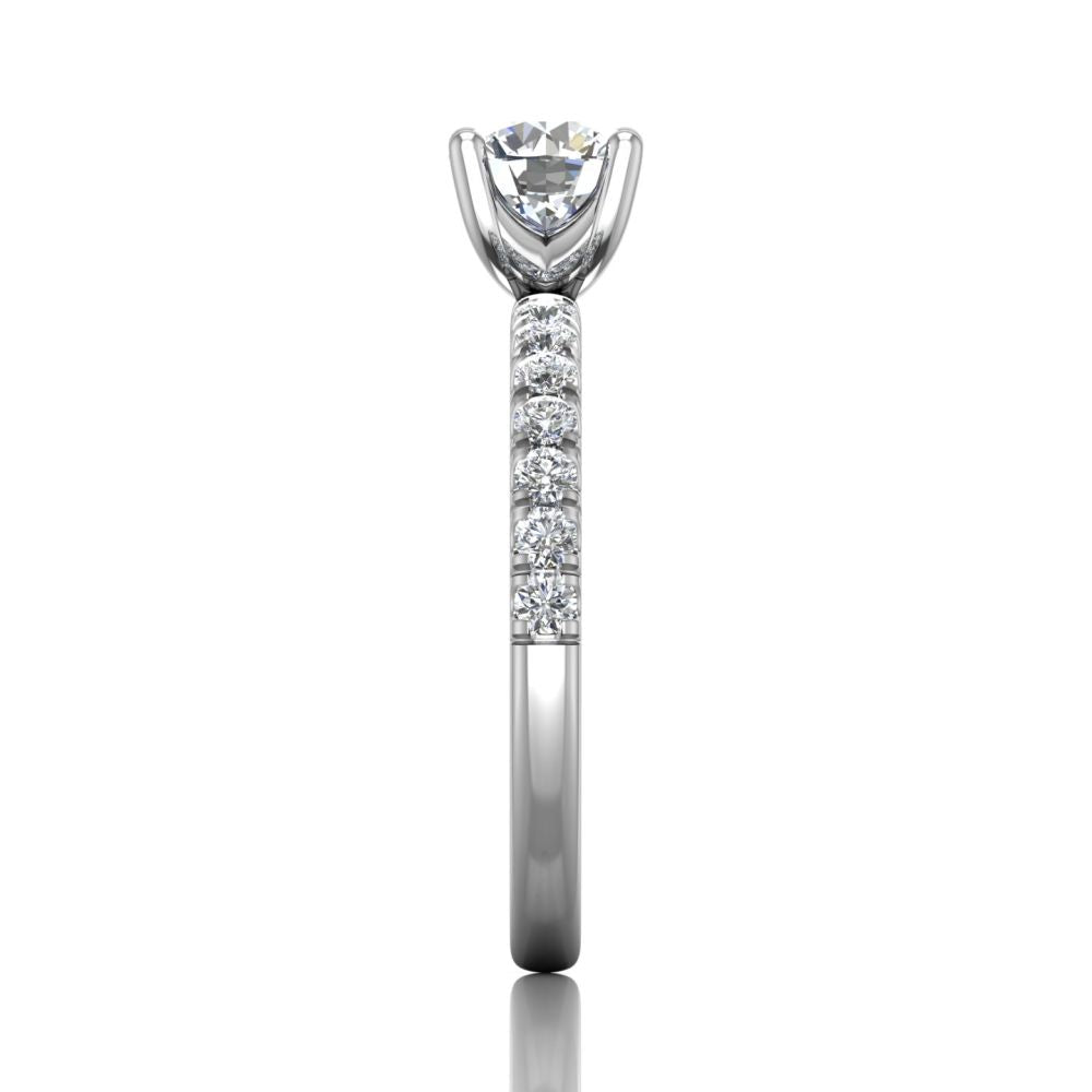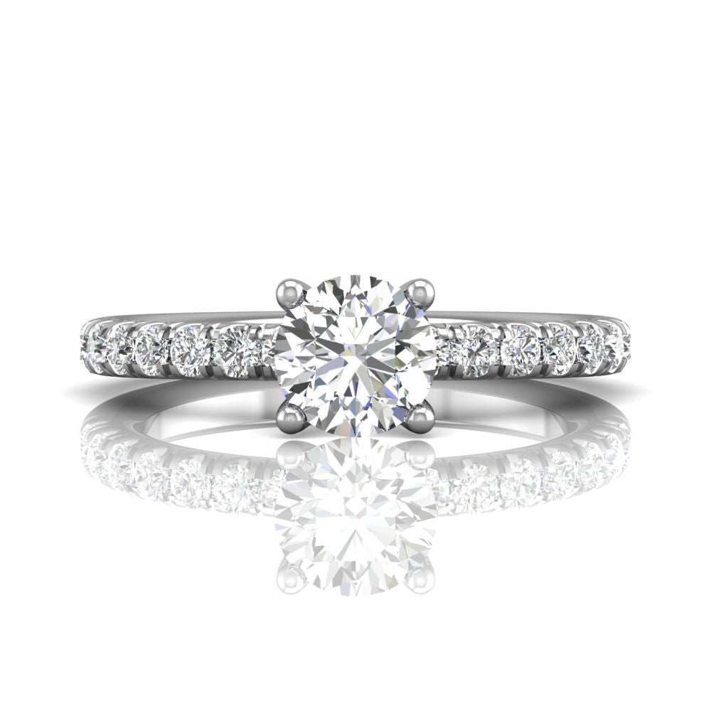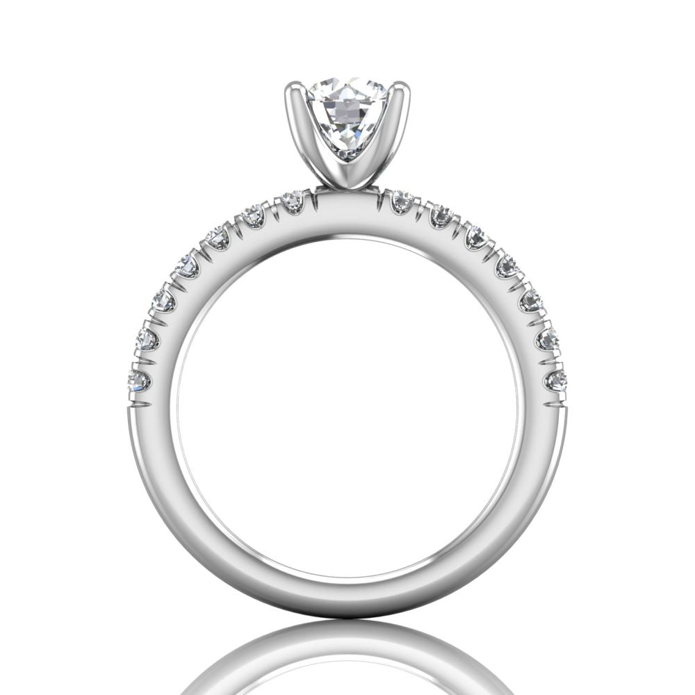 Complement your center diamond perfectly with this FlyerFit engagement ring accented with cutdown micropavé diamonds half way along the band that allows your diamond to be at the center of attention.
