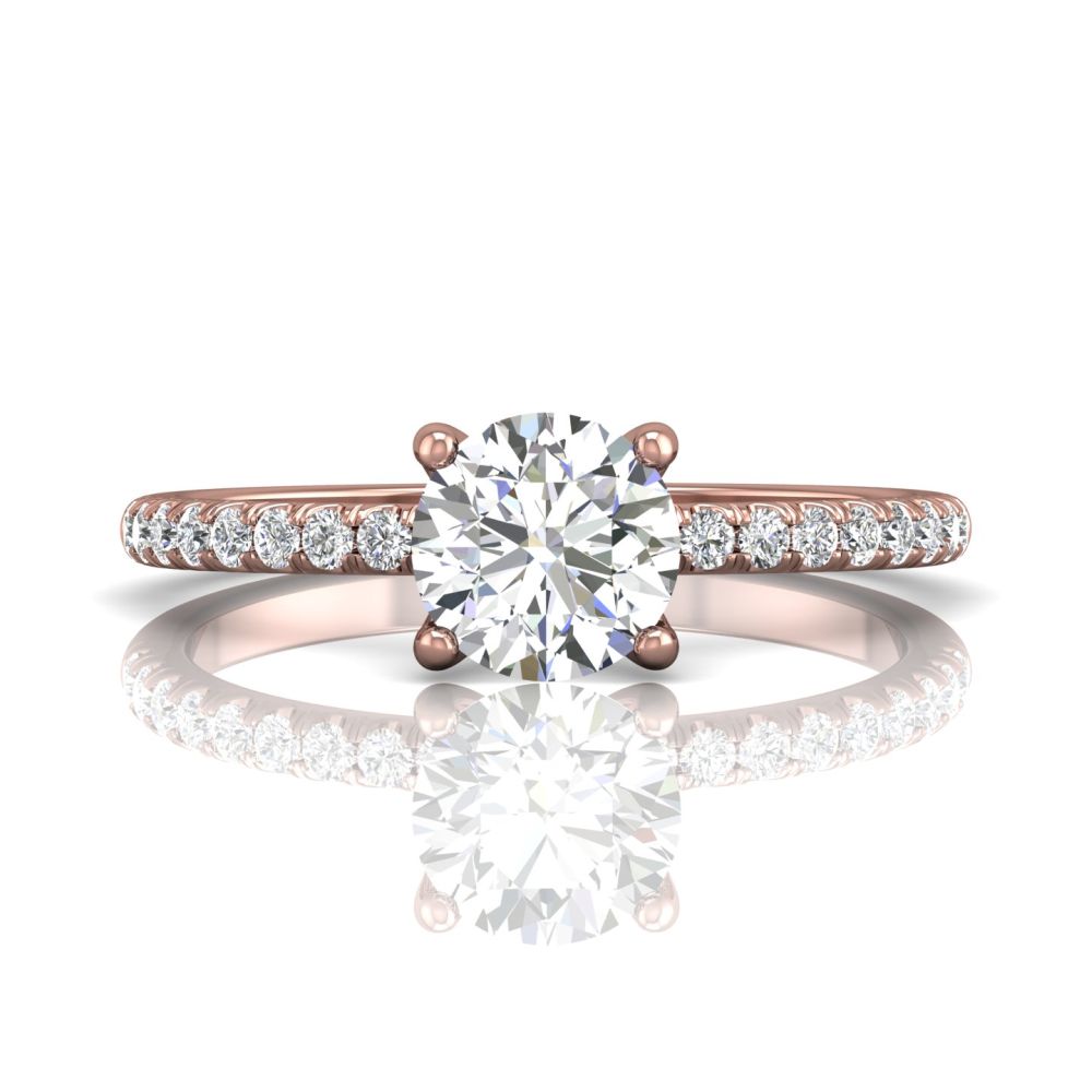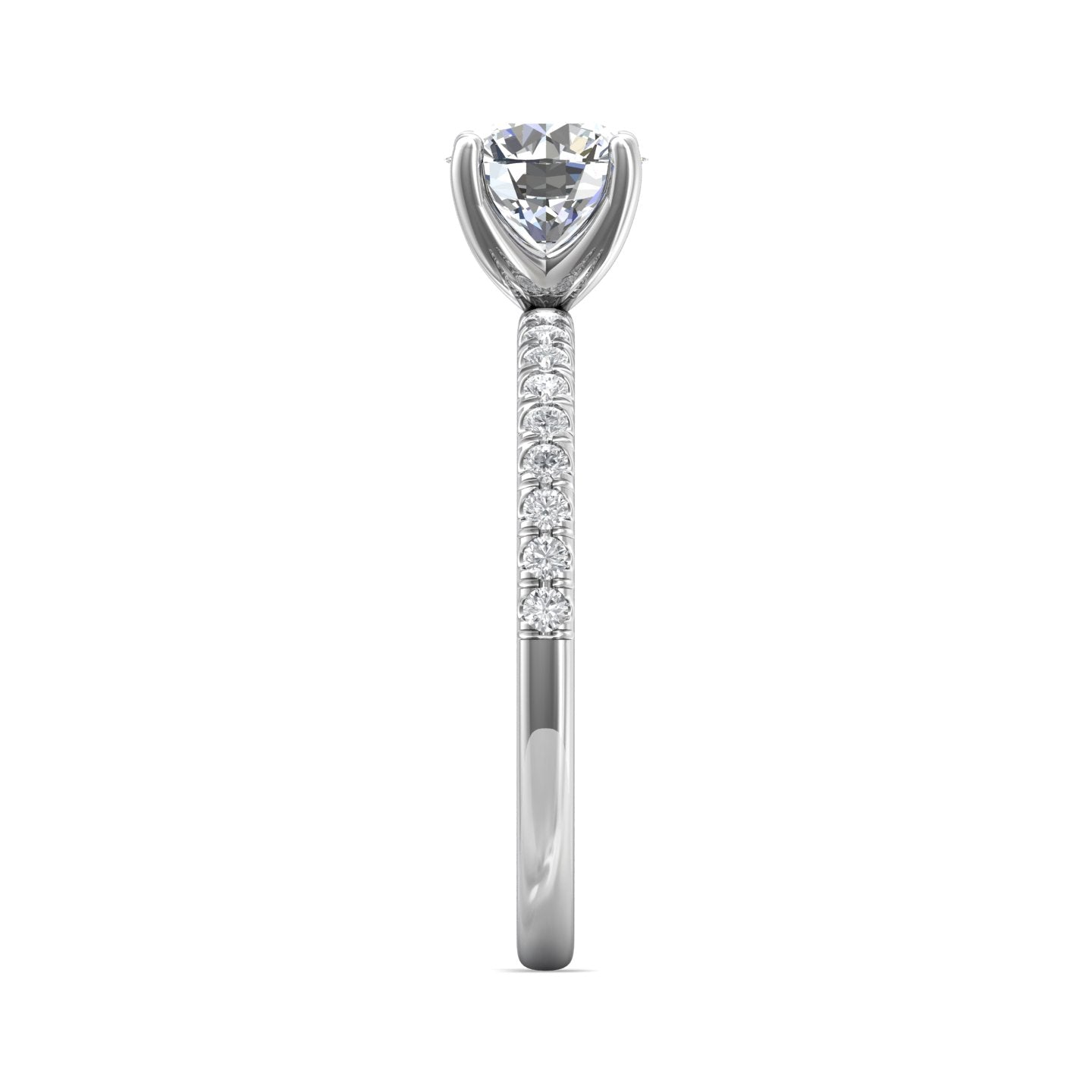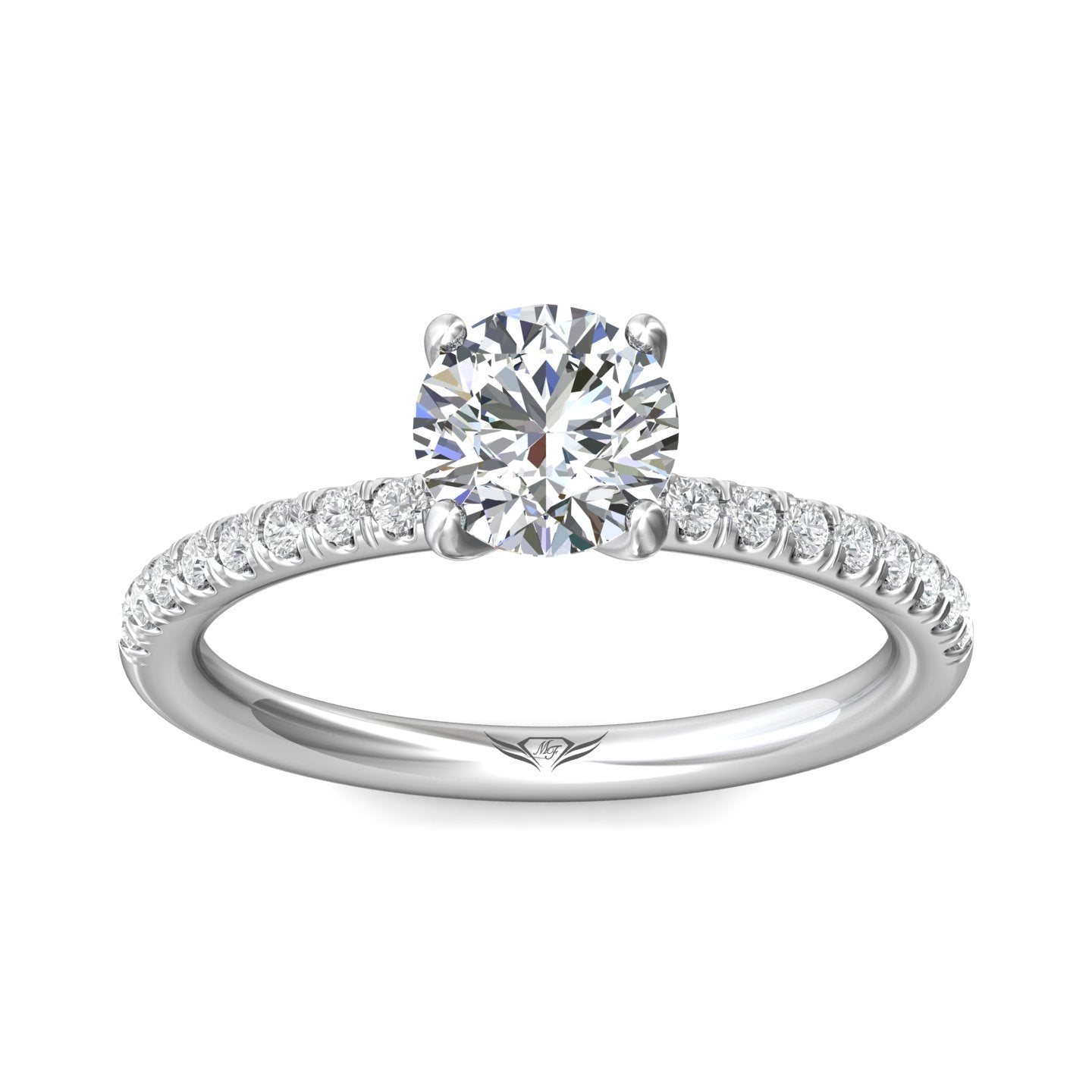 Complement your center diamond perfectly with this FlyerFit engagement ring accented with cutdown micropavé diamonds half way along the band that allows your diamond to be at the center of attention.