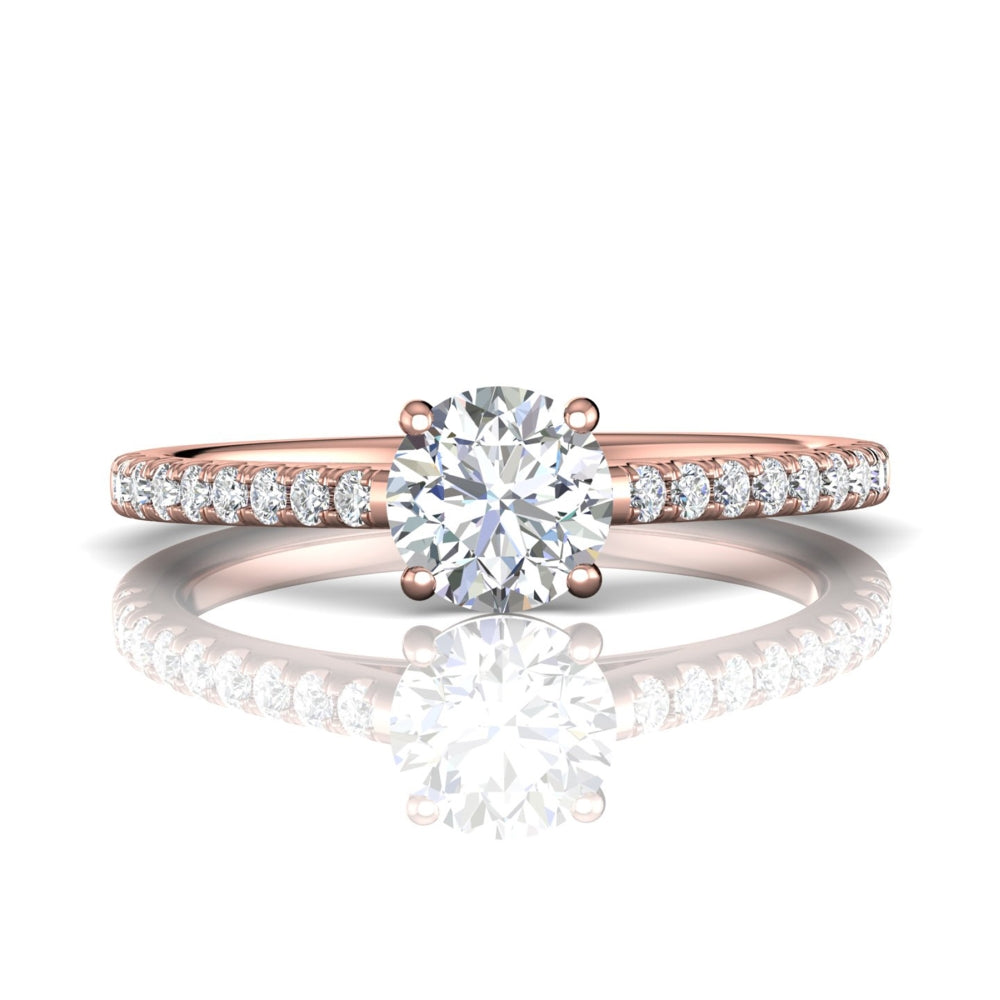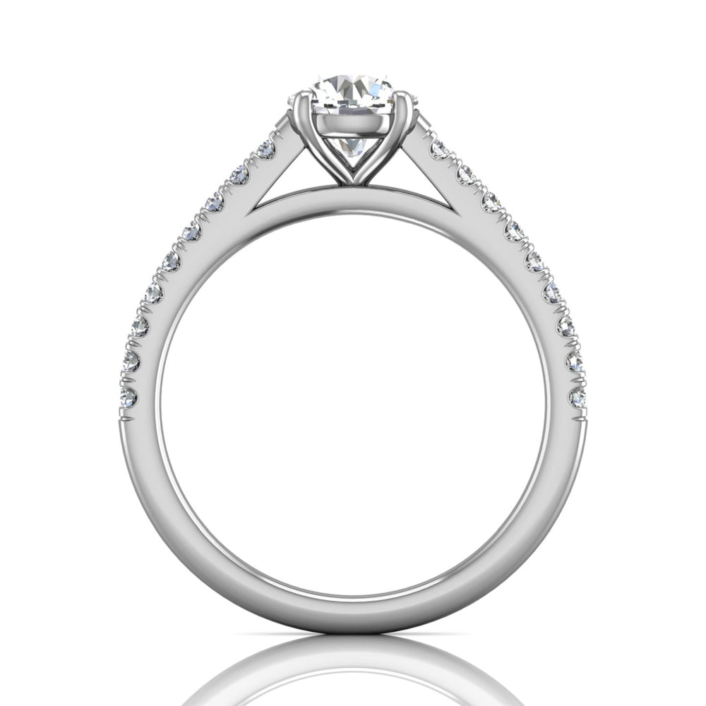 Elegant and graceful, this FlyerFit engagement ring showcases cutdown micropavé diamonds in a slim cathedral design to frame your center diamond.