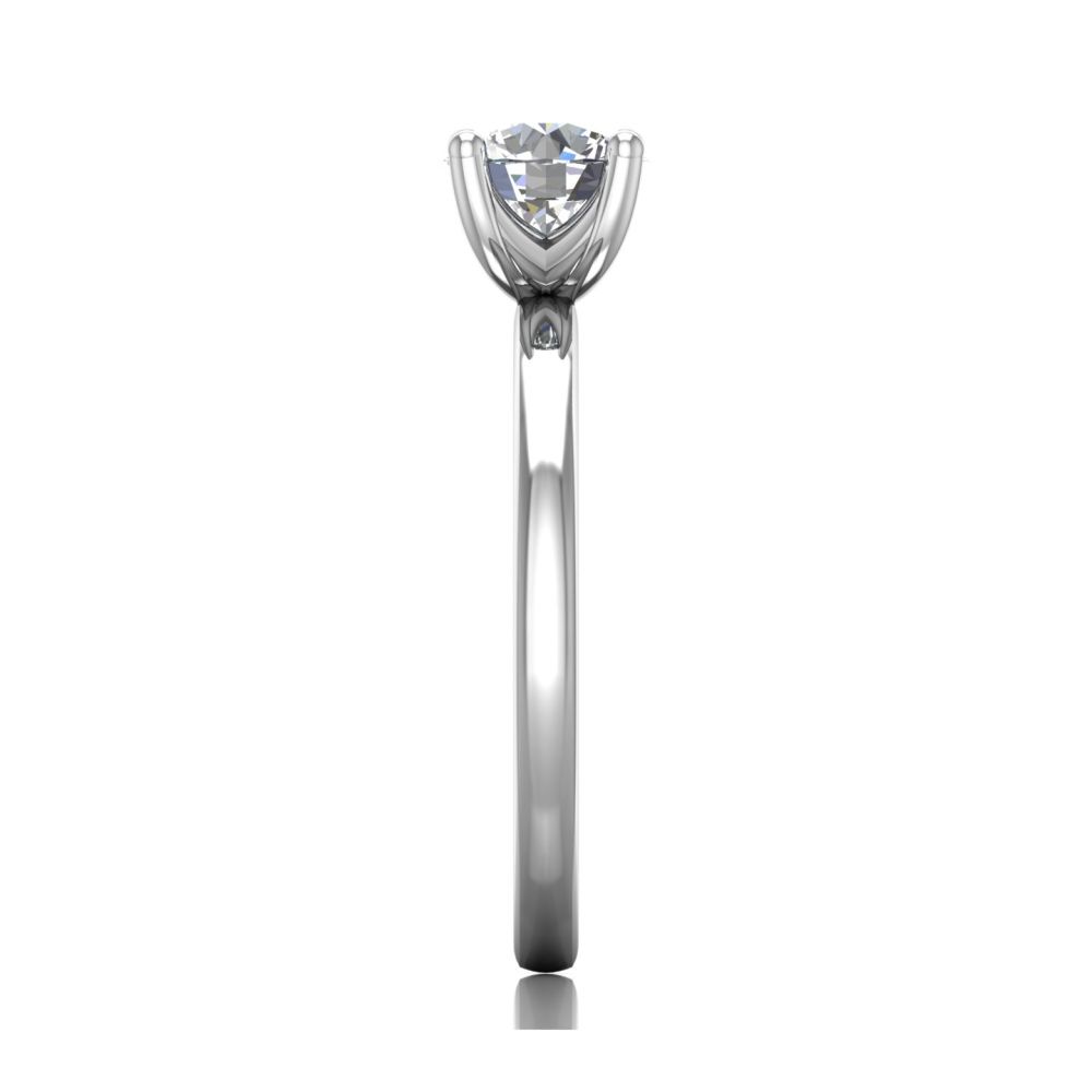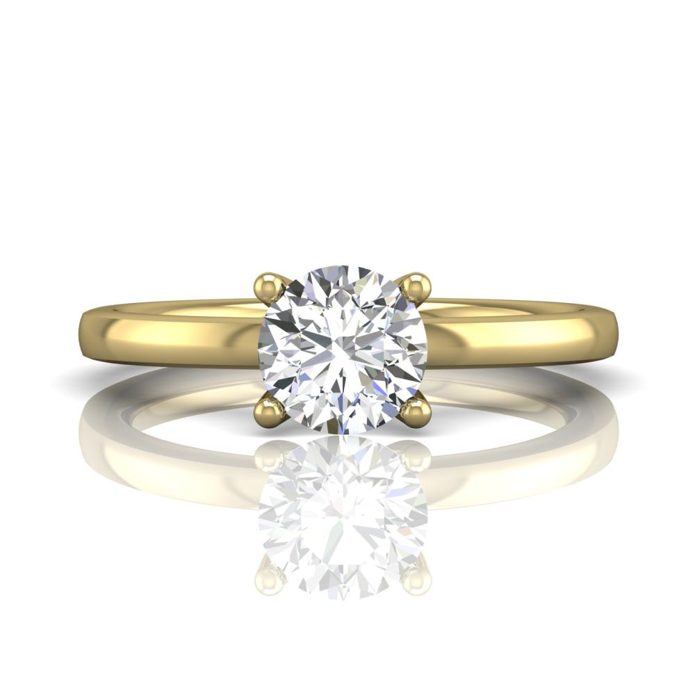 Stunningly simple, this FlyerFit solitaire engagement ring is designed with a modern elegant style edge to the band that allows your diamond to be the center of attention.