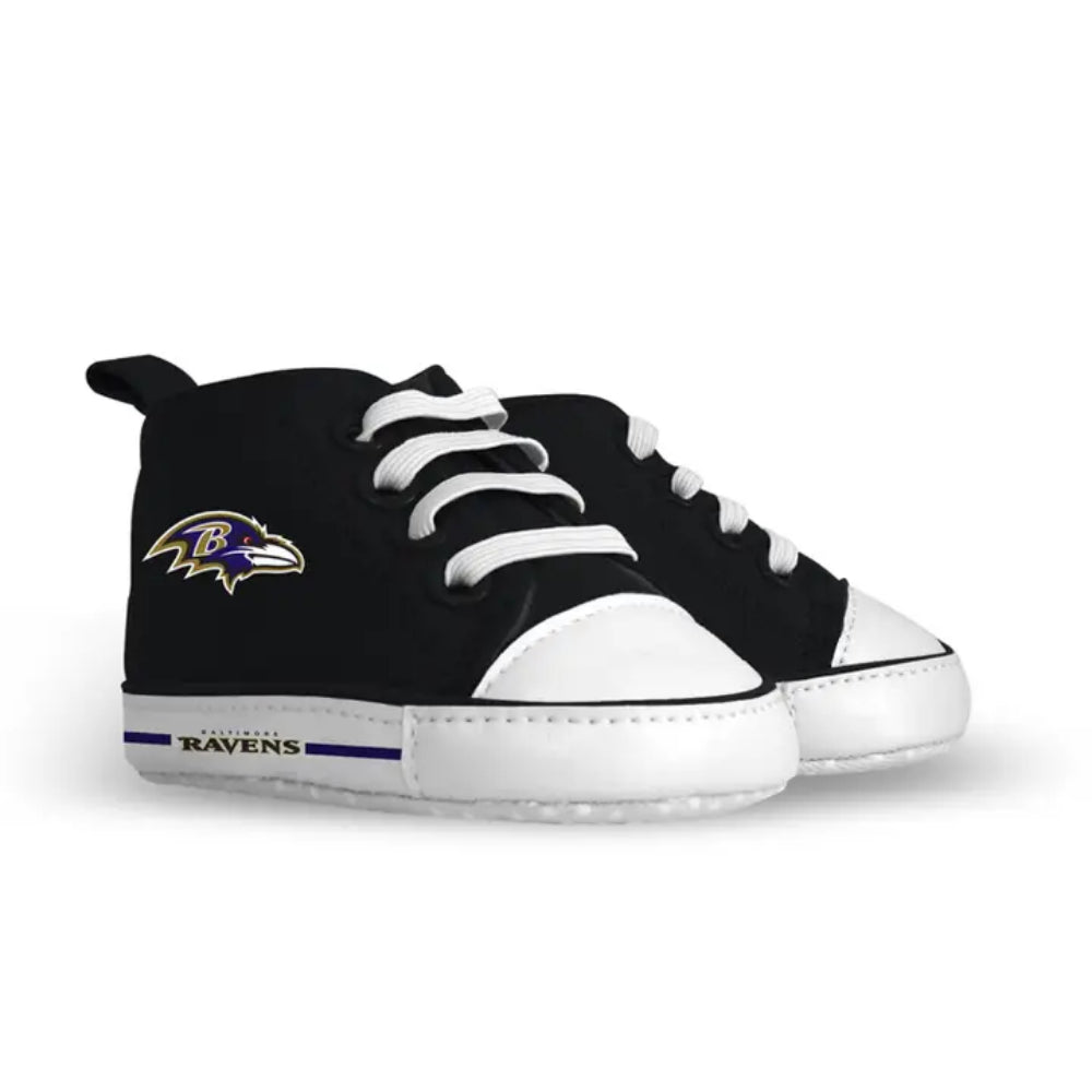Make your little fan the cutest of them all with this MasterPieces officially licensed NFL Baltimore Ravens Baby Fanatic unisex 2 Piece Gift Set! The set includes a team bib and pre-walkers. The pre-walker baby shoes are slip-ons with a team logo, white laces, grippers on the bottom, padded soles, and a supported toe cap for stability. The bib is 100% cotton and is embroidered with a team logo and has a hook and loop fastener to keep it secure.