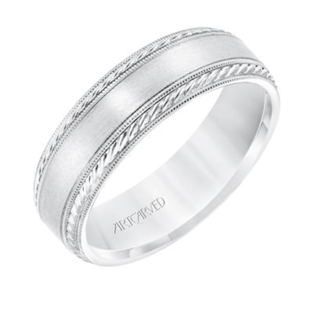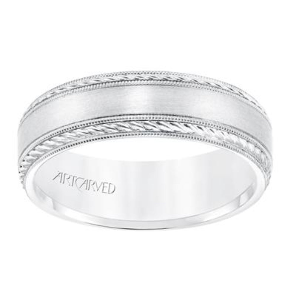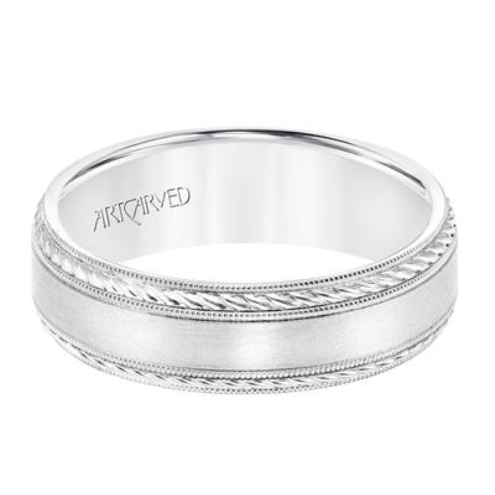 6.5 MM Comfort Fit Wedding Band with Satin Finish, Rope and Milgrain Accent with Milgrain Edges