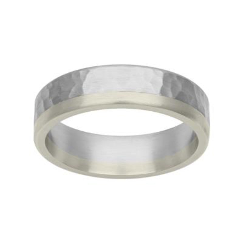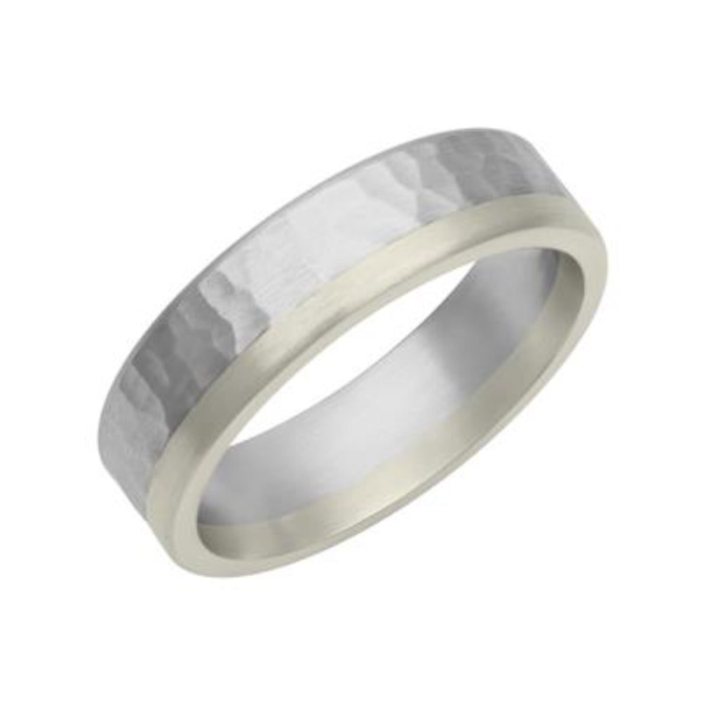 Men's Platinum & 18k Gold Hammered Finish Wedding Band