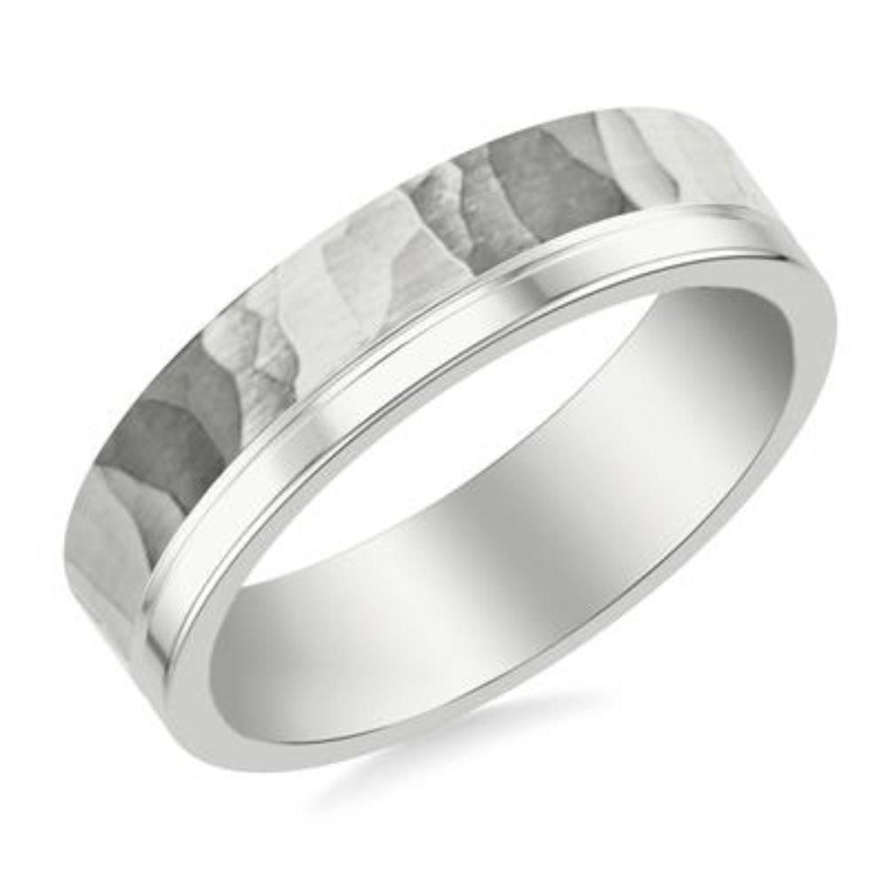 Men's Platinum 6mm Wedding Band with Hammer and Polished Finish