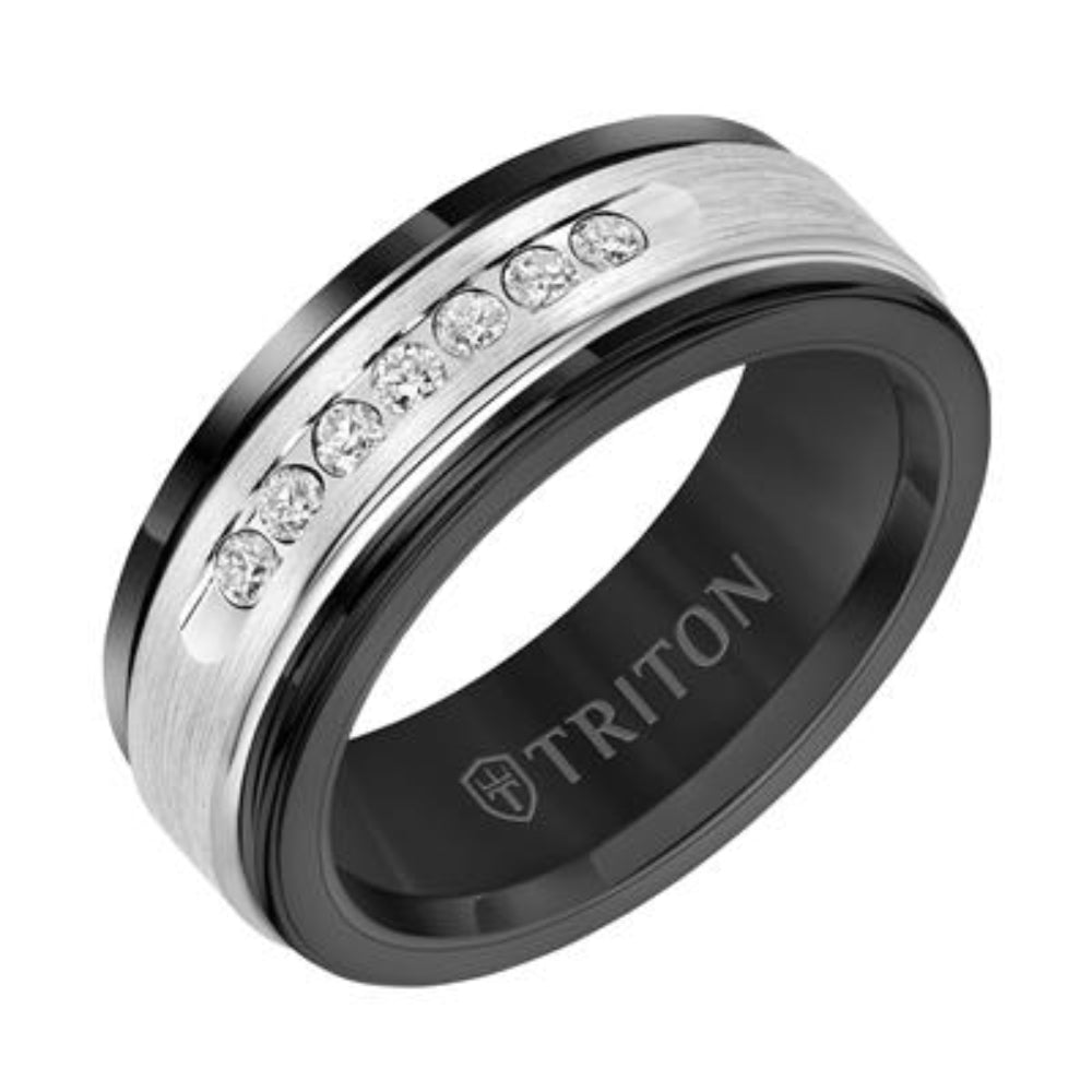 Men's Tungsten & White Gold Wedding Band with Diamonds