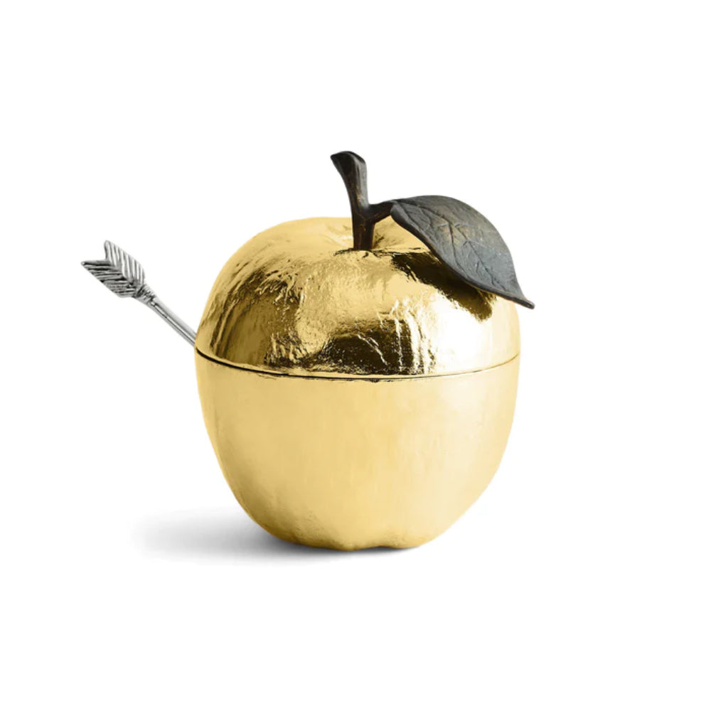 "I have a particular love of fruits and their symbolism. They are like gifts from nature, coming down from the tree ready to nourish us. Their ripened shapes are already evocative of vessels. My apple has an arrow shaped spoon piercing it just as a gentle reference to the story of William Tell. The apple is more traditionally symbolic of love, fertility, even temptation. For me, it will also represent the city I love-New York" -M.