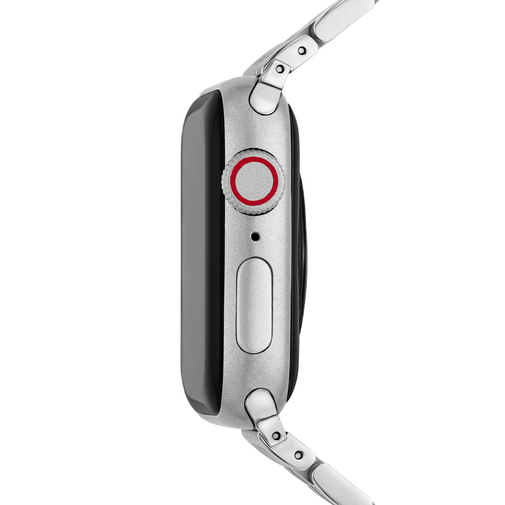 The Michele 7-Link Bracelet is a timeless accessory that complements Apple Watches. Crafted from polished stainless steel, this bracelet features seven rows of smooth links and a clasp engraved with the signature Michele logo. Its 18mm width ensures compatibility with any Michele watch requiring this size, allowing for interchangeability. Watch face not included.