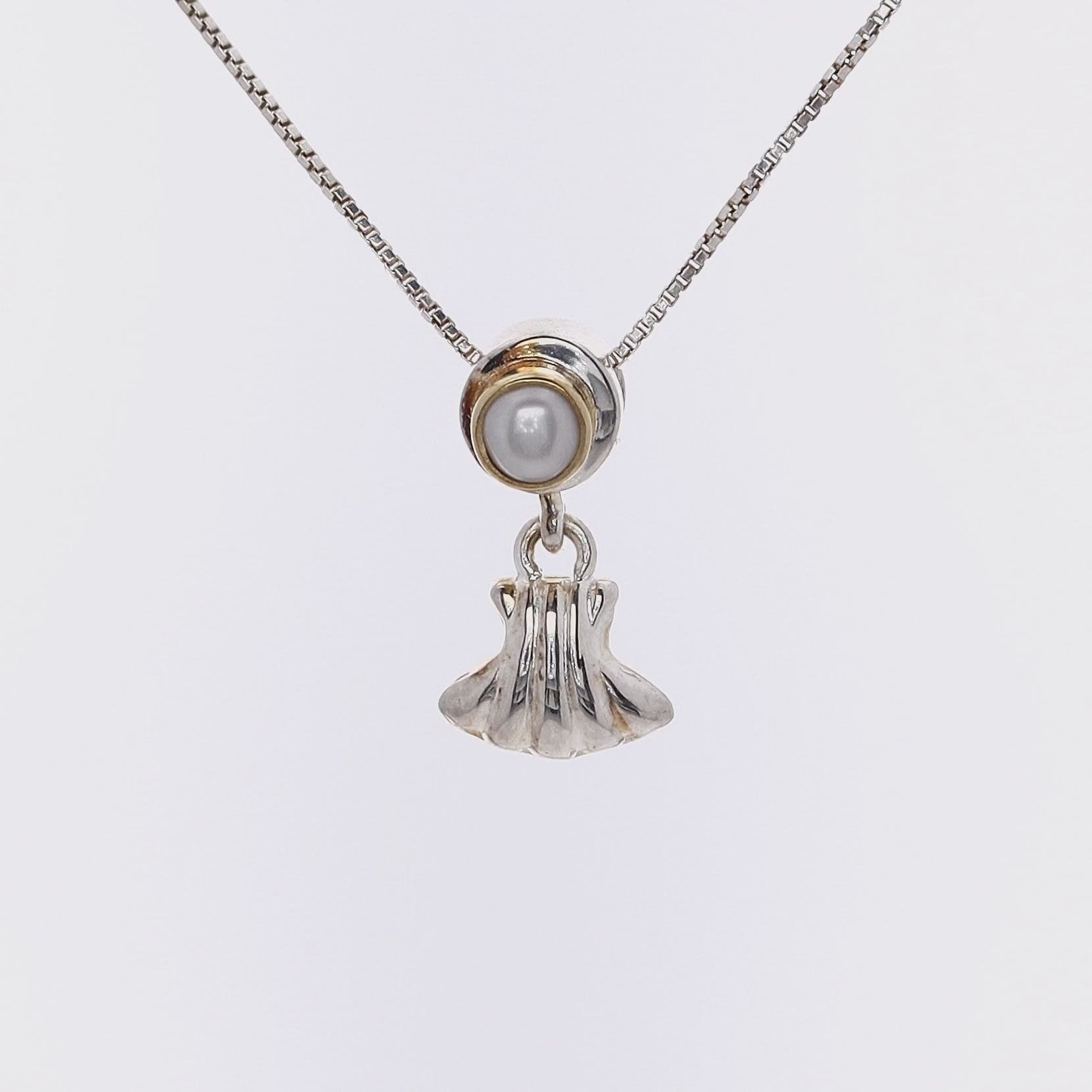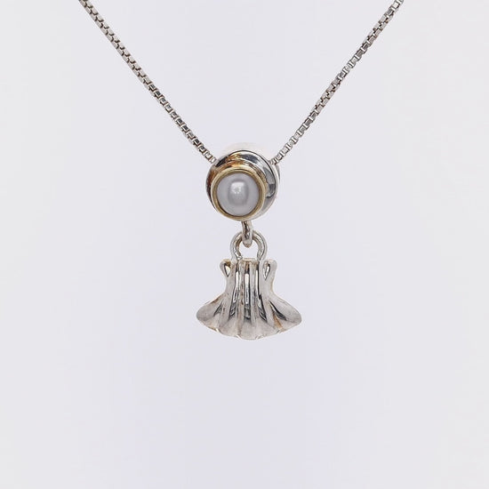 Michou Sterling Silver 22 Karat Yellow Gold Sliding Vermeil Seashell and Pearl Pendant Necklace