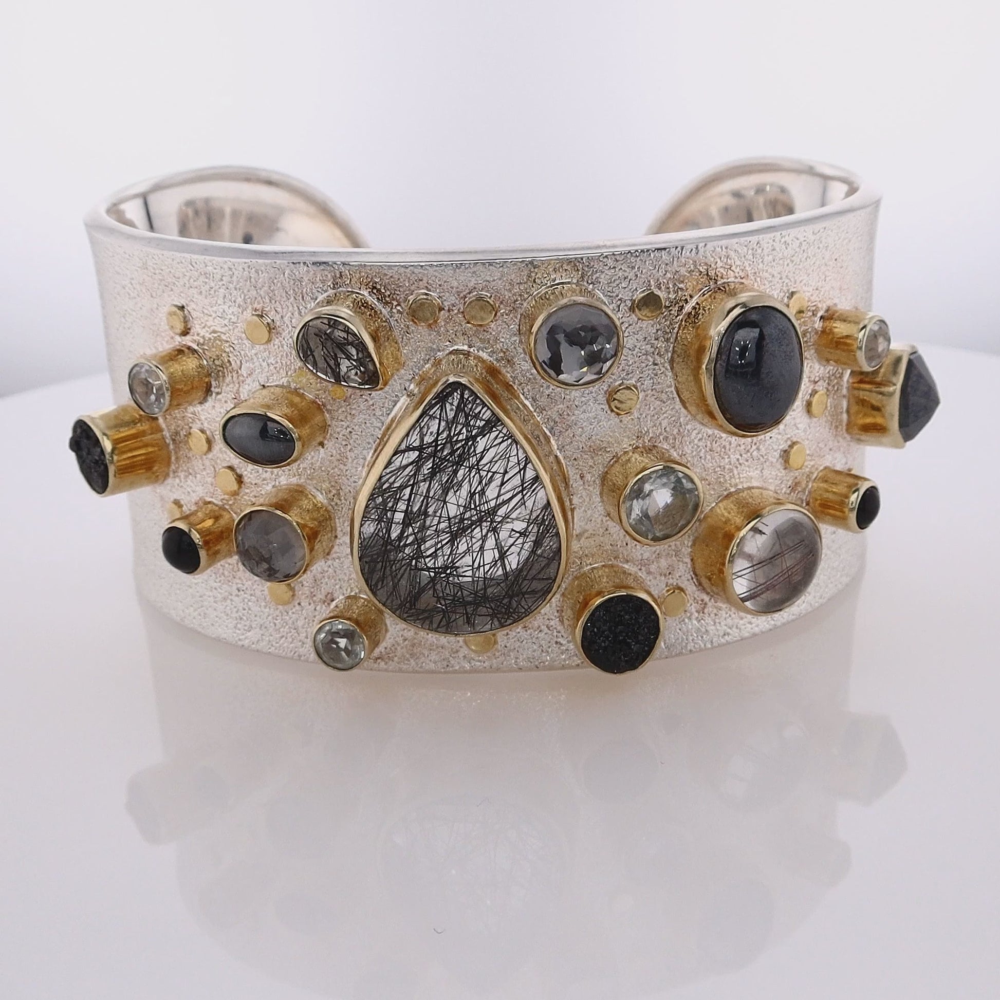 Michou Sterling Silver & 22k Vermeil Cuff Bracelet with Multiple Gemstones