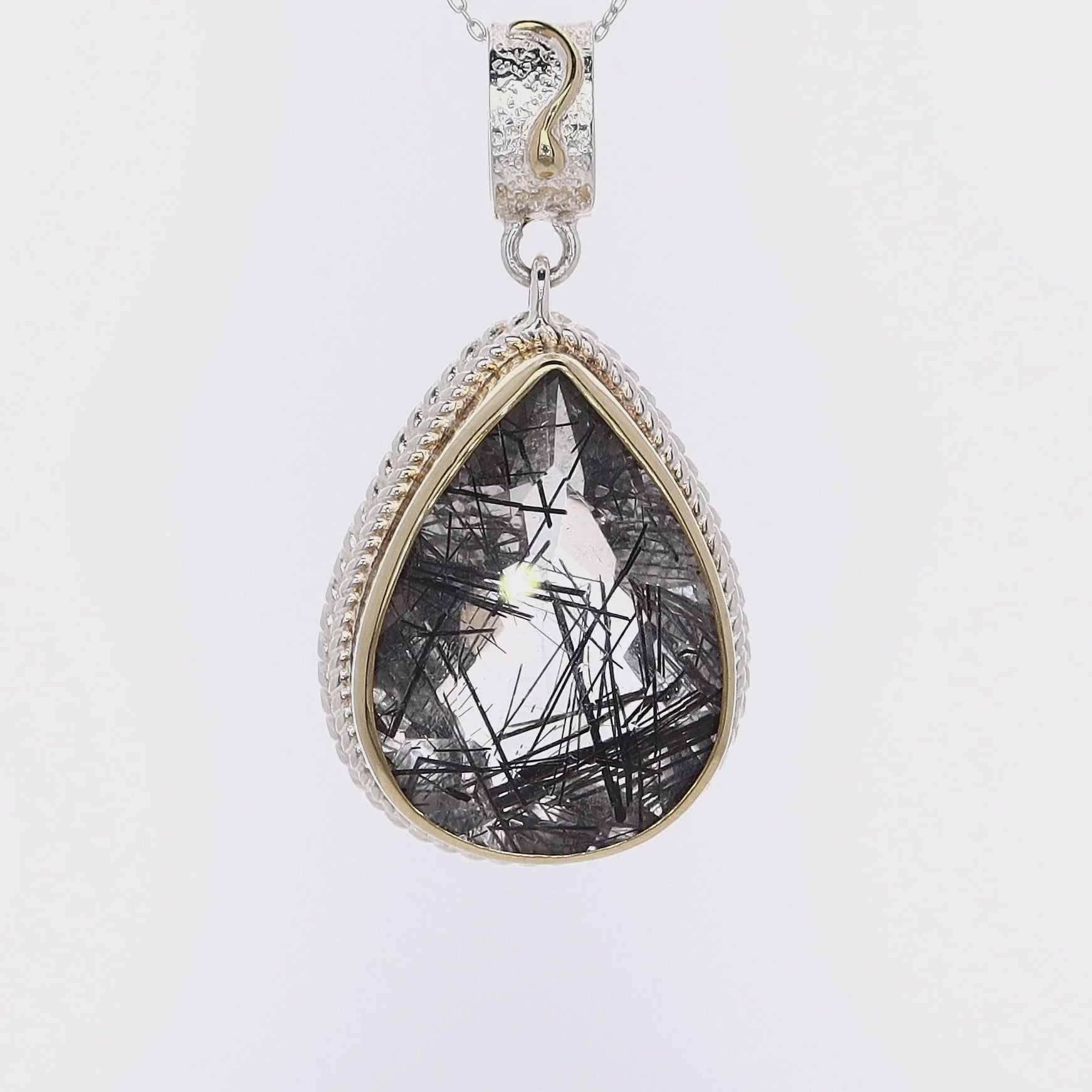 Michou Sterling Silver and 2 Karat Yellow Gold Pear Shape Tourmalinated Quartz Vermeil Pendant