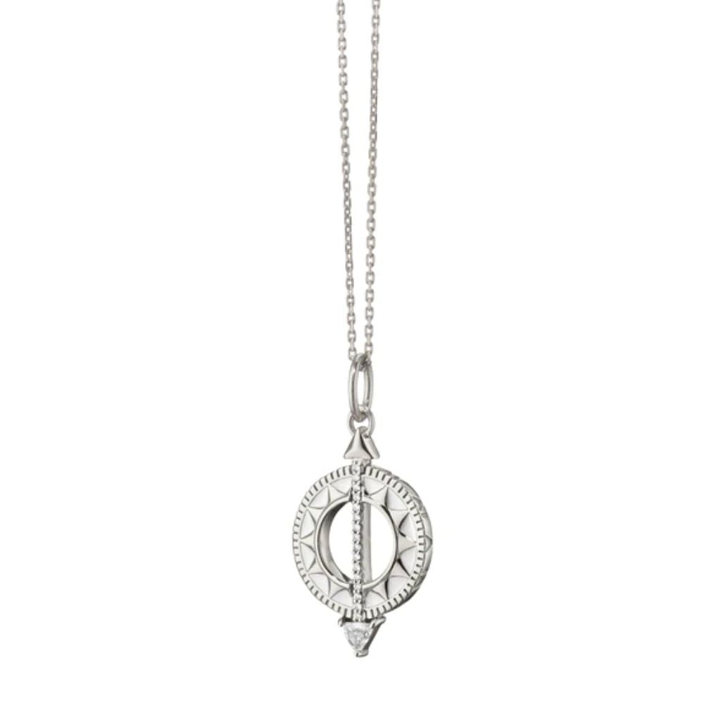 MRK Mini Sterling Silver White Enamel Sundial Charm Necklace