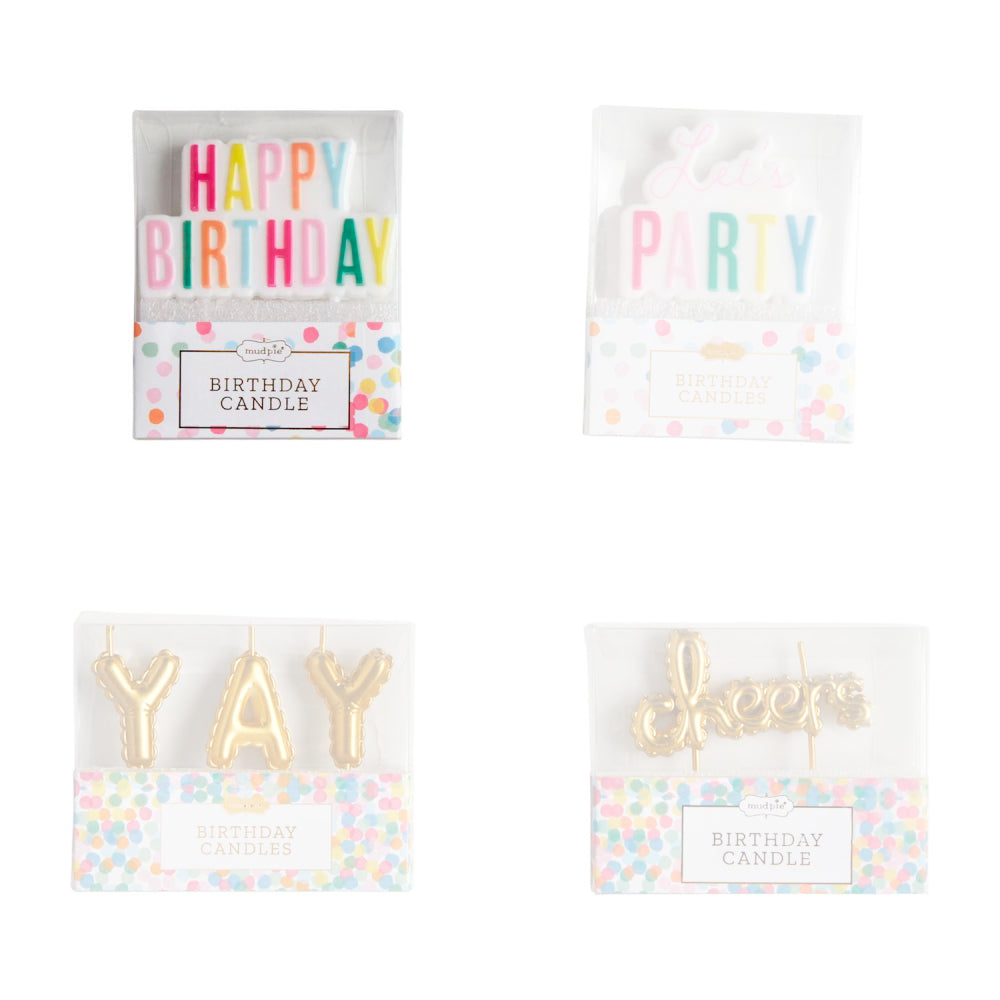 Hand-painted or foiled wax birthday candle on plastic stakes.