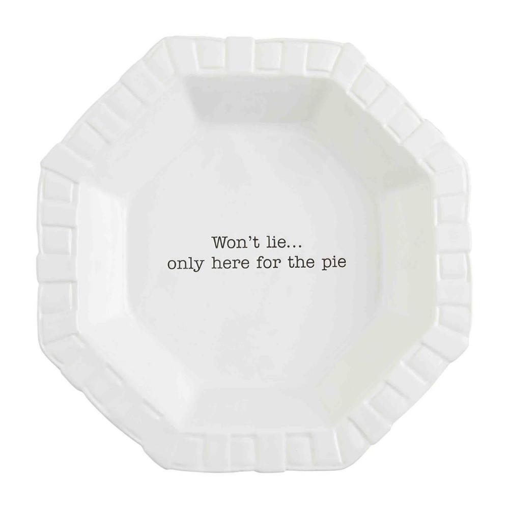 Ceramic pie dish. Comes with cotton ingredient hand towel. Kraft tag includes recipe.