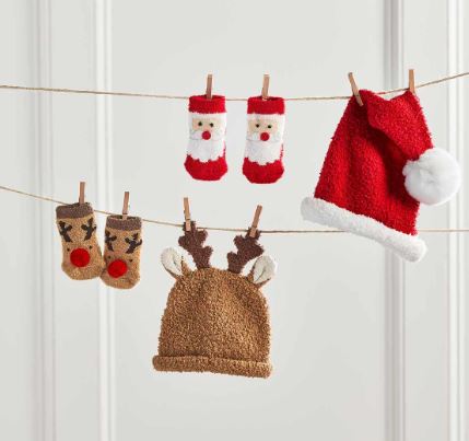 2-piece set. Chenille Santa hat comes with coordinating socks.