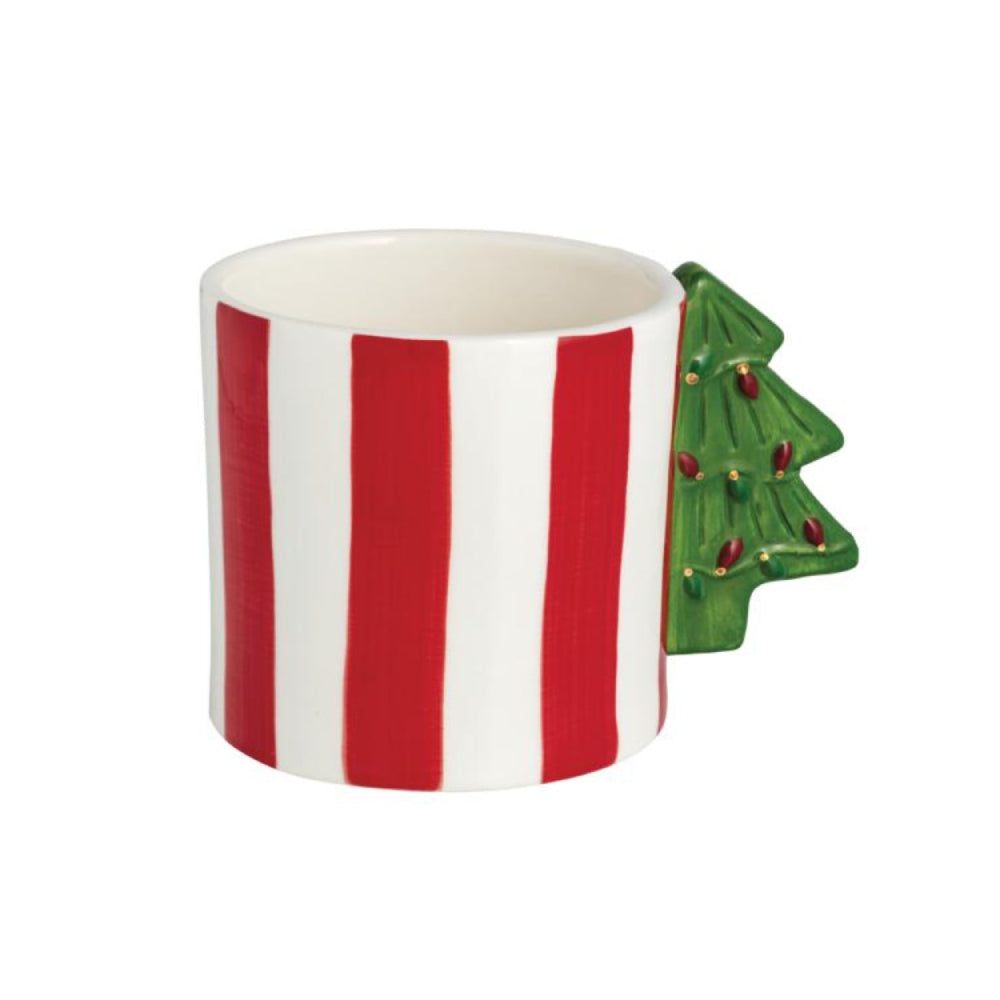 A perfect addition to your holiday collection. This hand-painted stoneware mug showcases a unique in-mold figural handle designed to resemble a classic candy cane, adding a touch of whimsy to your morning coffee or evening cocoa. With a generous 15 oz capacity, it’s ideal for savoring your favorite hot beverages. Crafted from durable stoneware, this mug promises both style and functionality, making it a delightful gift or a cheerful treat for yourself. Embrace the spirit of the season with every sip from this enchanting mug.