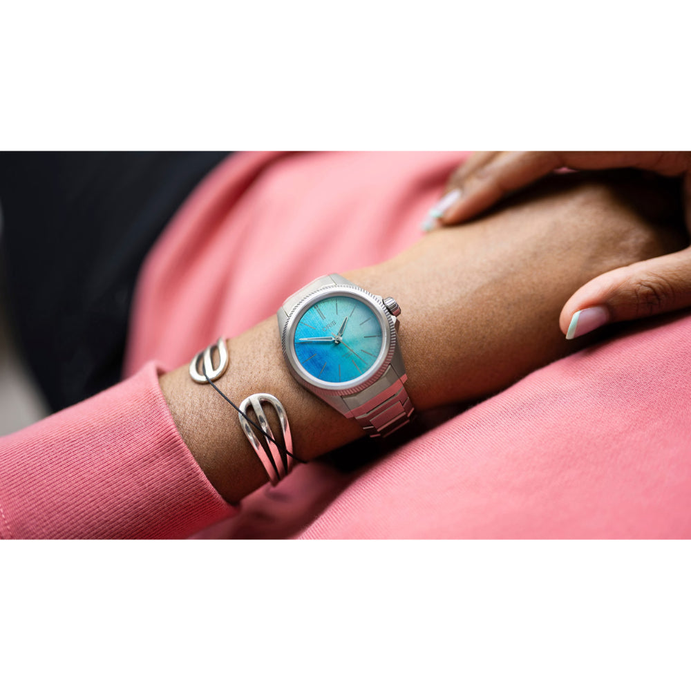 Meet the ProPilot X Calibre 400 Laser, a watch with a dial like no other. Its iridescent finish comes from a state-of-the-art technique based on biomimicry, where technology replicates the wonders of nature. Despite the dial’s kaleidoscopic finish, there’s not a single drop of colour pigment on it.