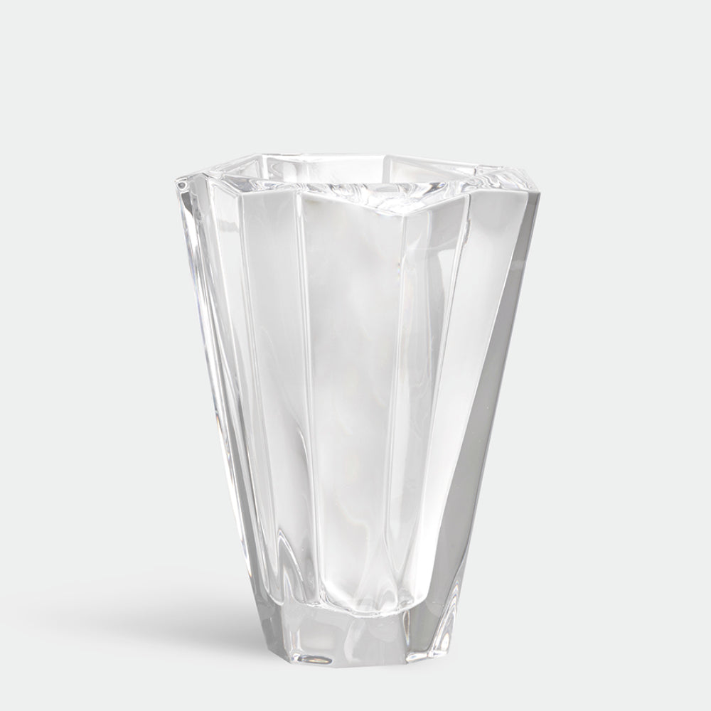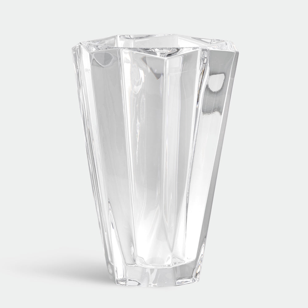 Precious Vase from Orrefors has an asymmetrical design that beautifully refracts the light reflected in the thick crystal. The large vase is a decorative centerpiece delivering an elegant feel to the home. Complement it with a bouquet of choice. Designed by Malin Lindahl.