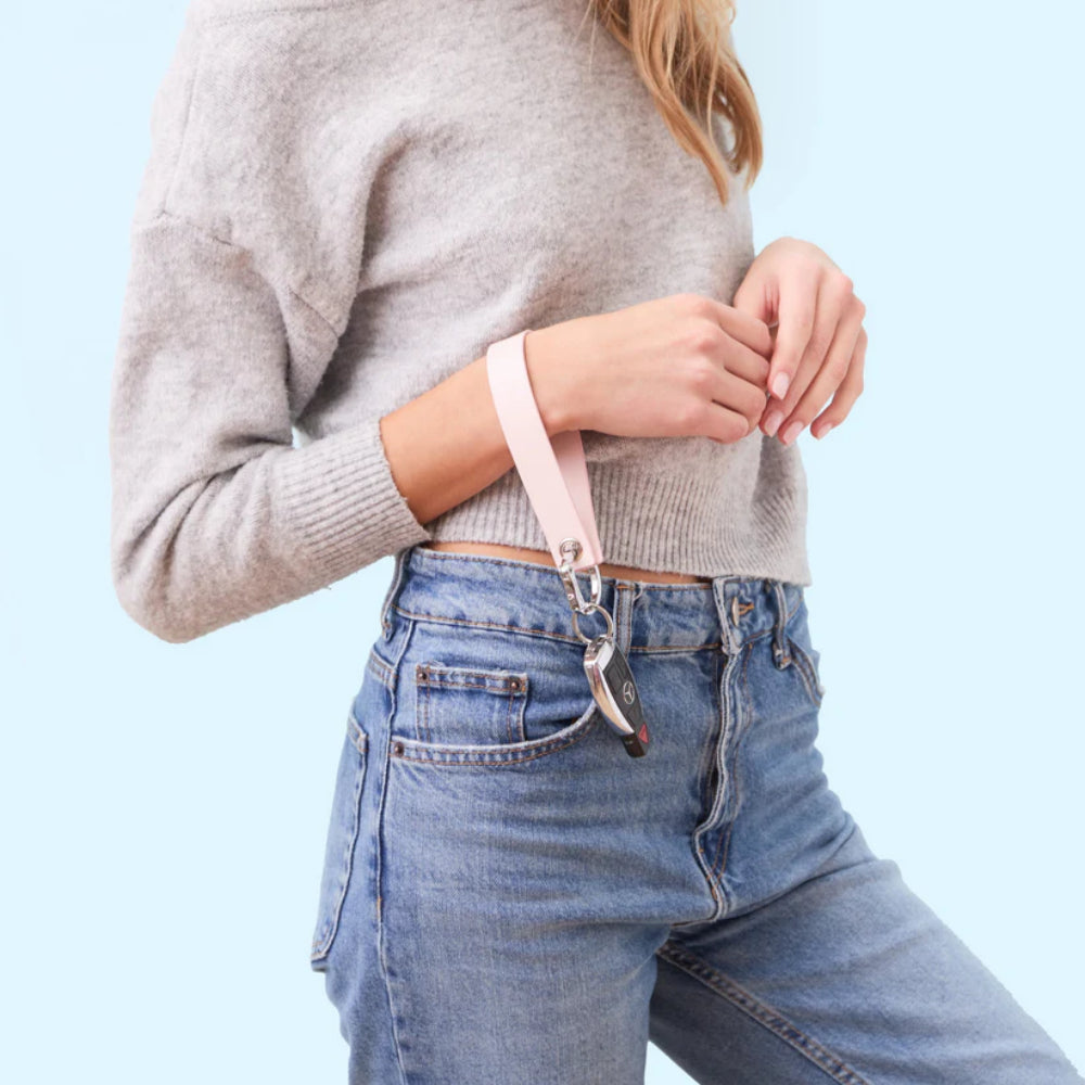Never lose your keys again with our wristlet keychain! Made from genuine leather, this keychain is not only durable but also stylish. Our signature locking clasp ensures that your keys stay safe and sound wherever you go and allows you to easily add or remove essentials. With its sleek design and convenient size, you can easily slip this keychain onto your wrist or attach it to your bag for easy access. Say goodbye to fumbling through your bag or pockets to find your keys - our leather loop keychain keeps keeps you handsfree on the go!