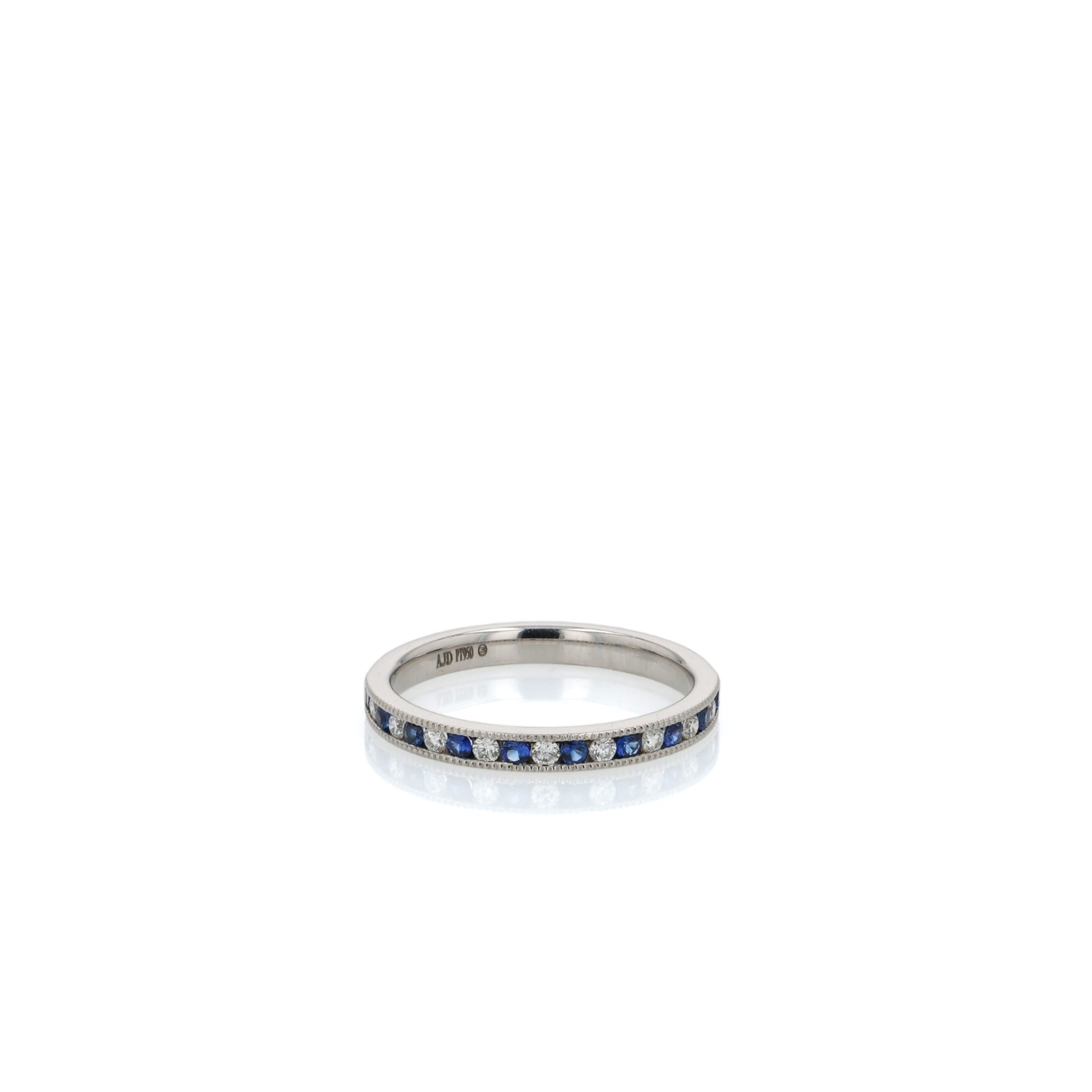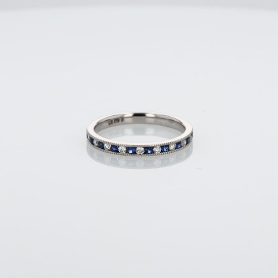 Platinum Alternating Round Sapphire and Diamond Halfway Wedding Band