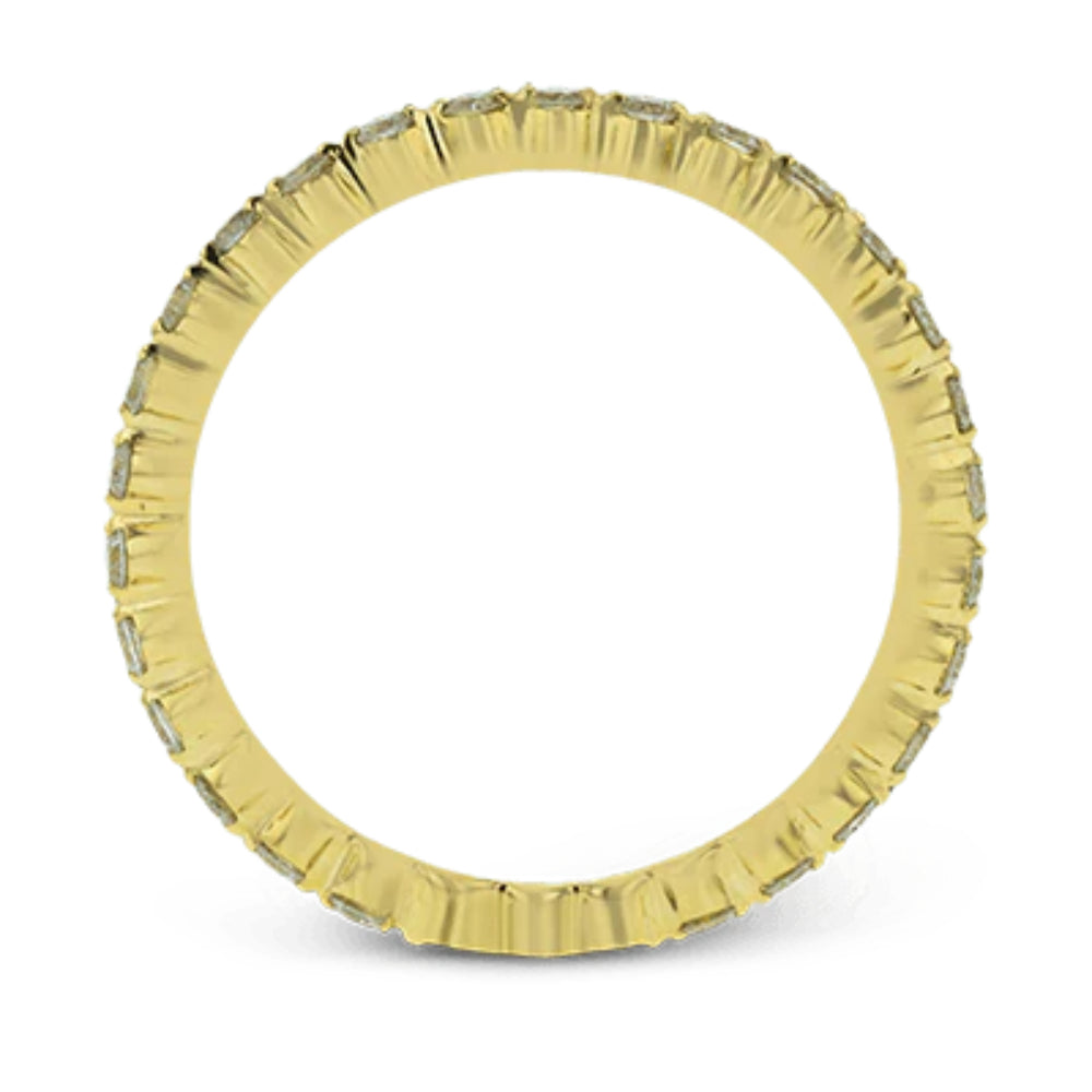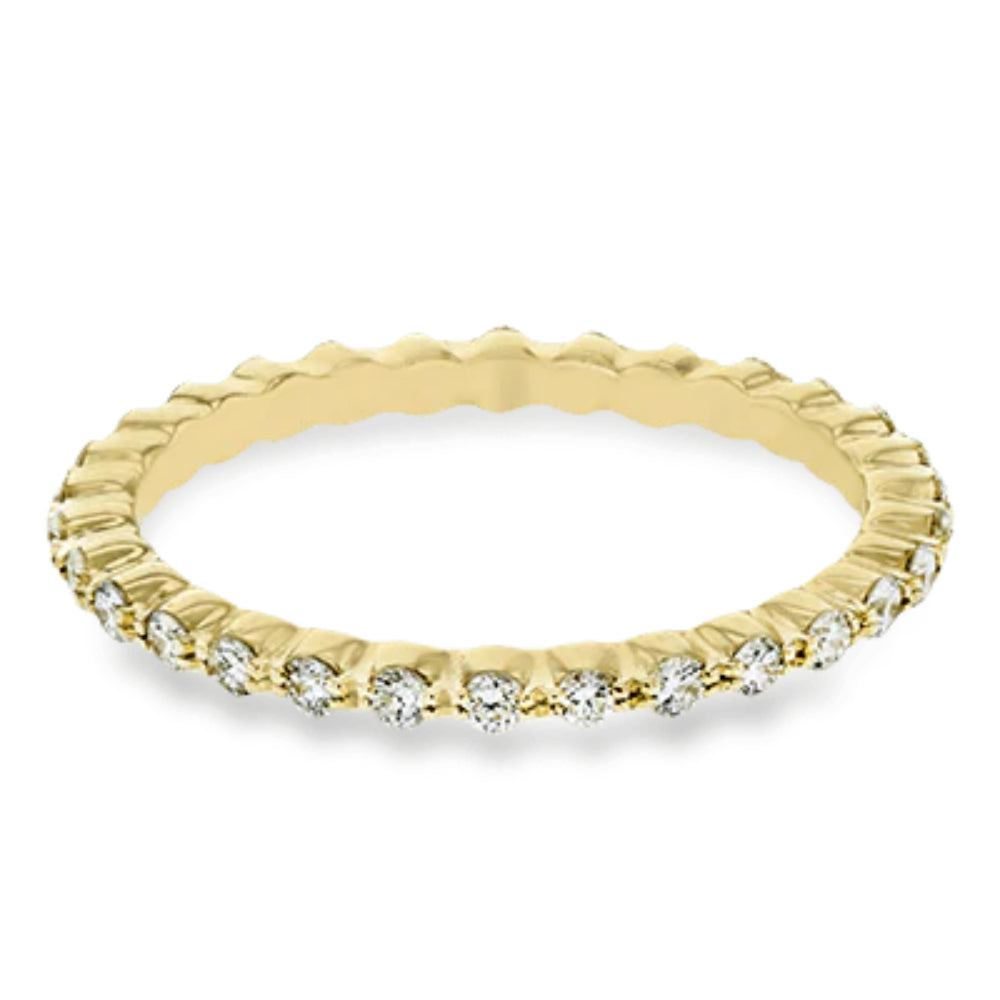 Featuring a modern stackable design, this yellow gold band is accented by shimmering white diamonds