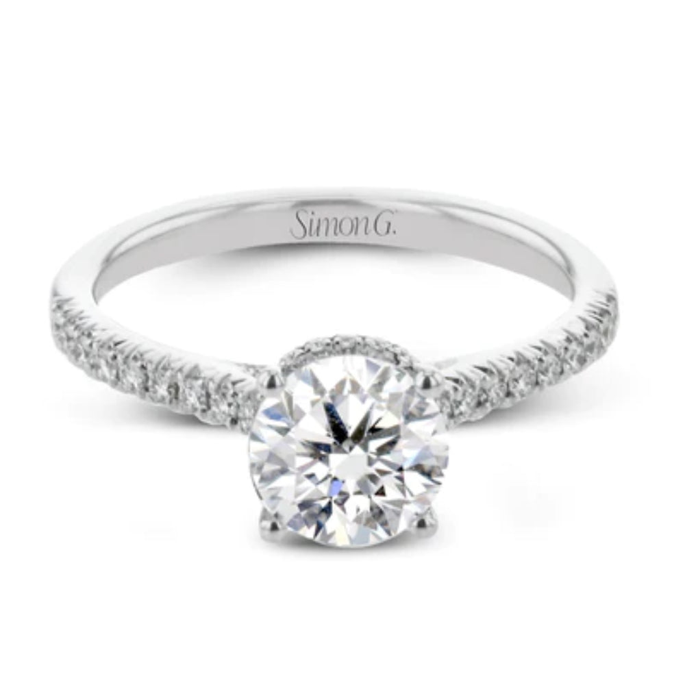 Simon G. 18k Gold Round-Cut Hidden Halo Engagement Ring with Diamonds