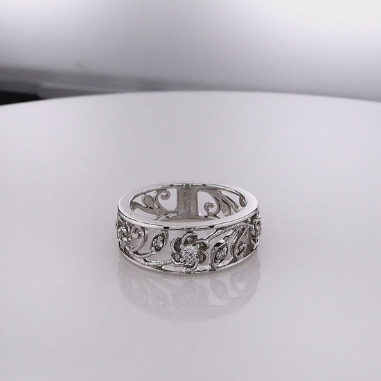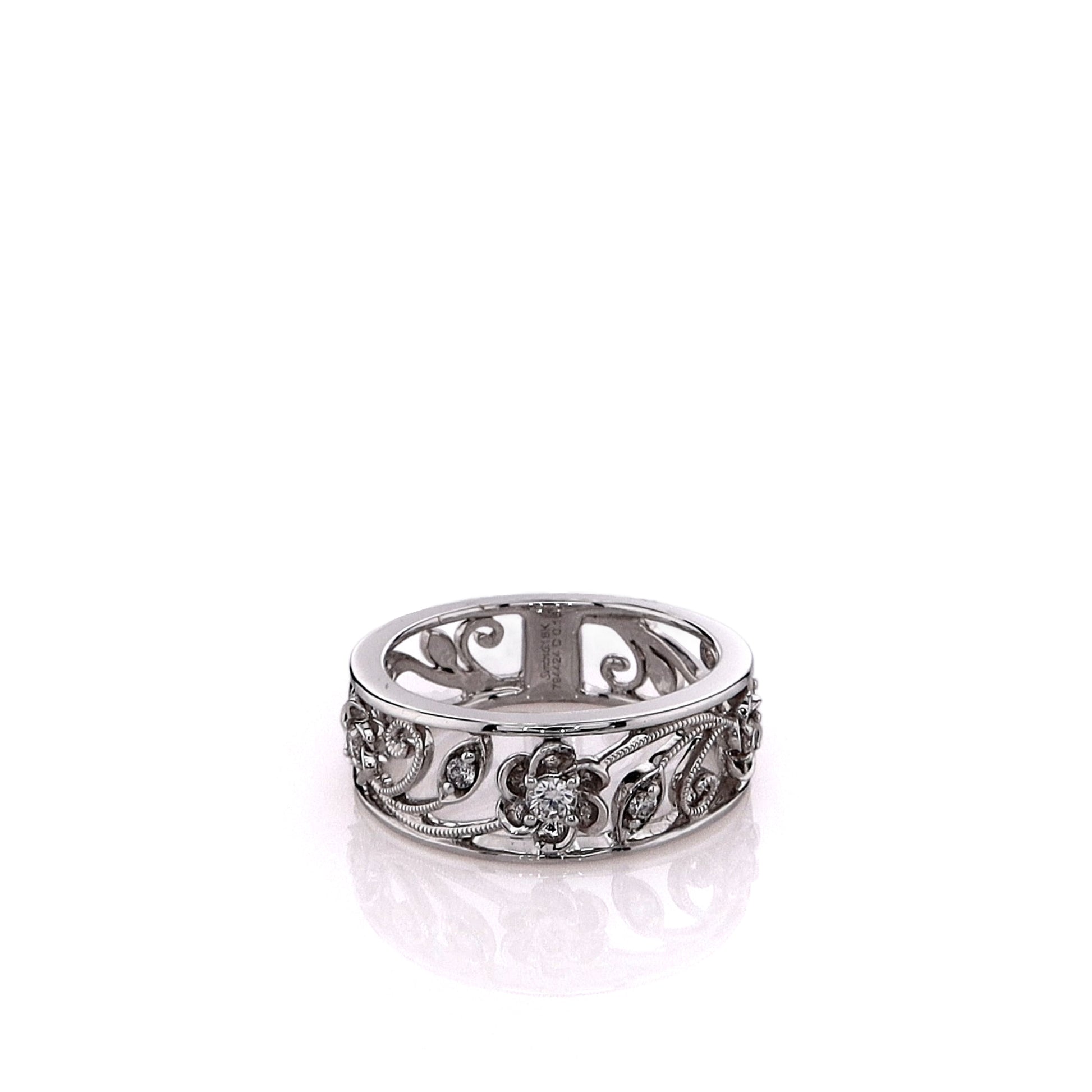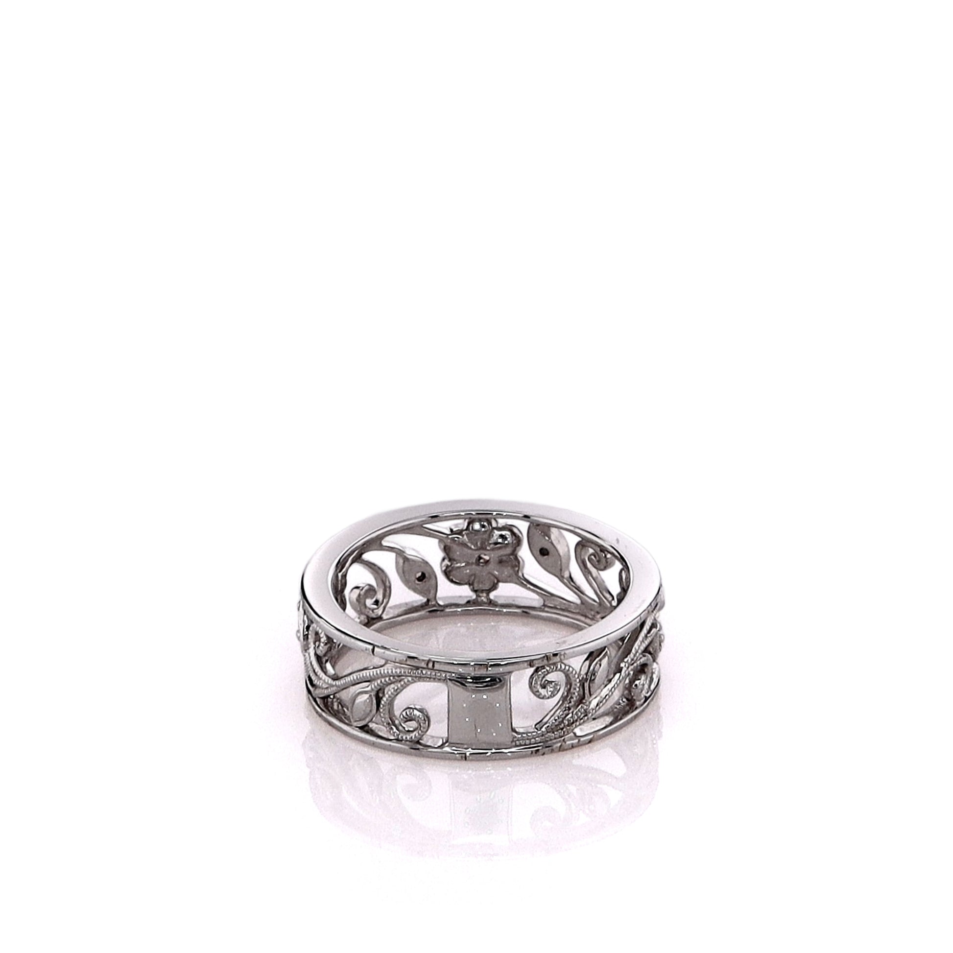 Simon G. 18k White Gold Floral and Leaf Design Open Work Diamond Band
