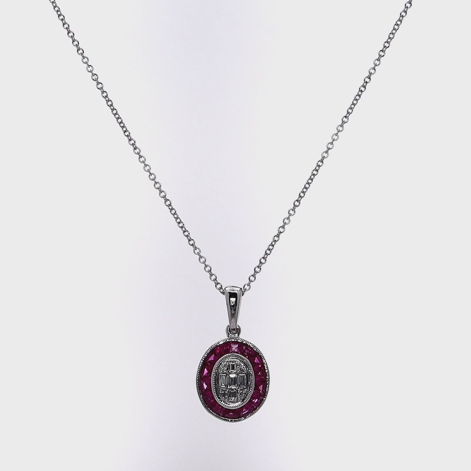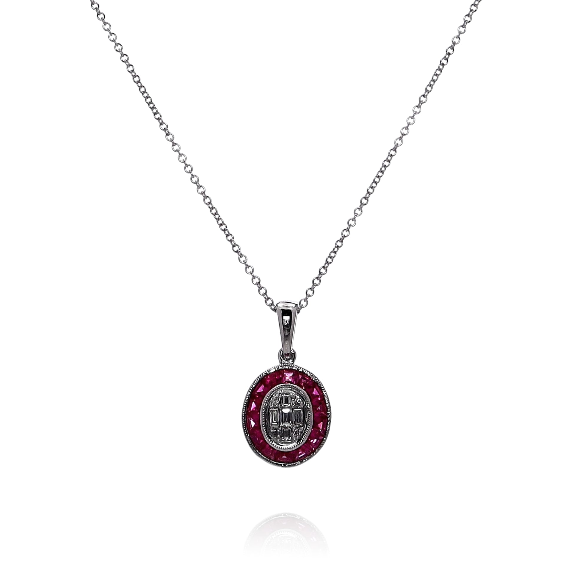 Simon G. 18k White Gold Ruby and Diamond Pendant Necklace