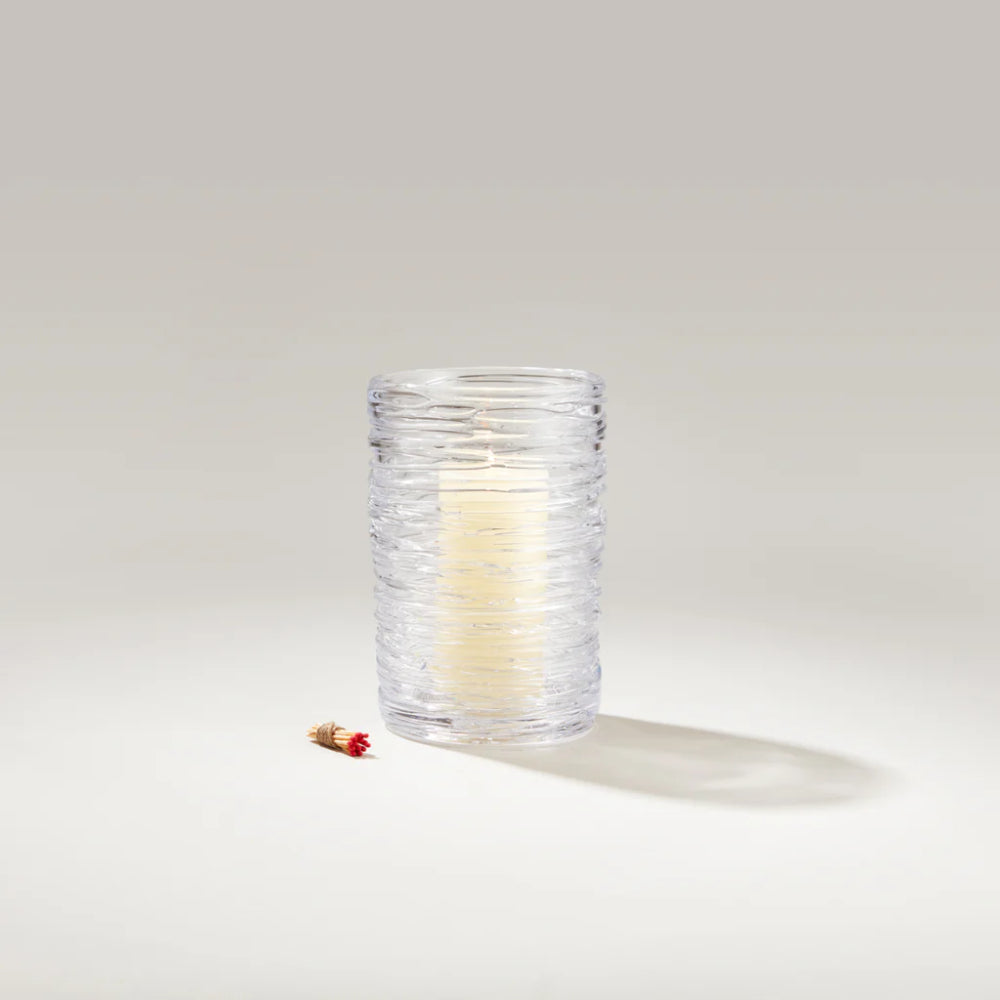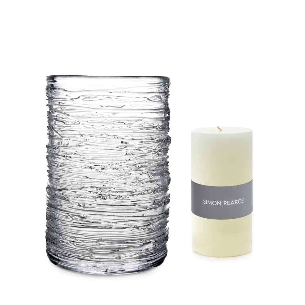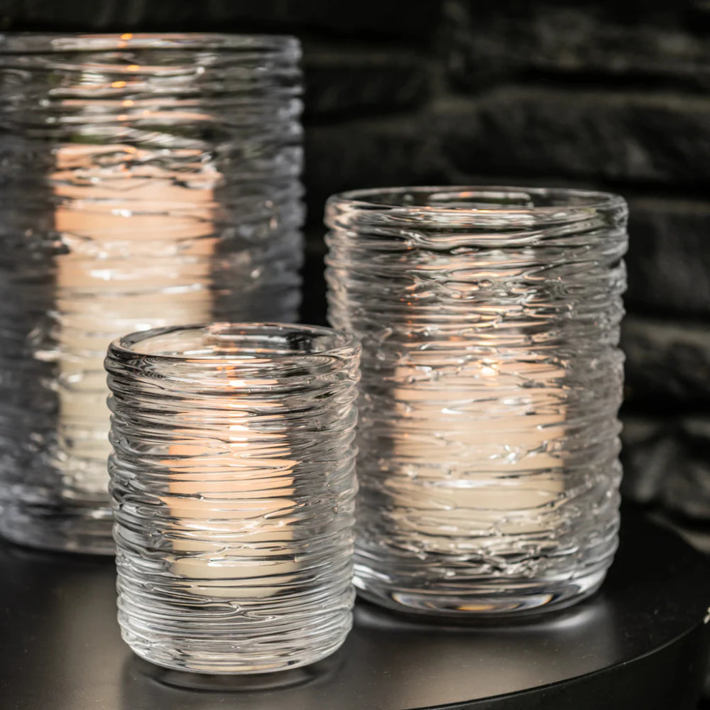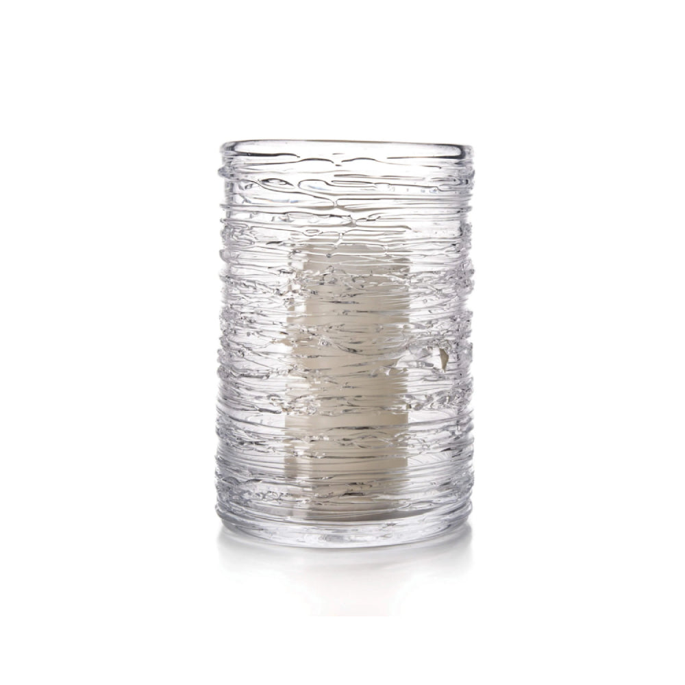 In a bold interpretation of the craft, master glassblowers nimbly wrap fine strands of glass around a cylindrical base to form the unique, natural silhouette of each candle holder. Whether frozen in winter, or flowing in summer - this piece was inspired by the constantly changing rivers, streams and waterways in Vermont.